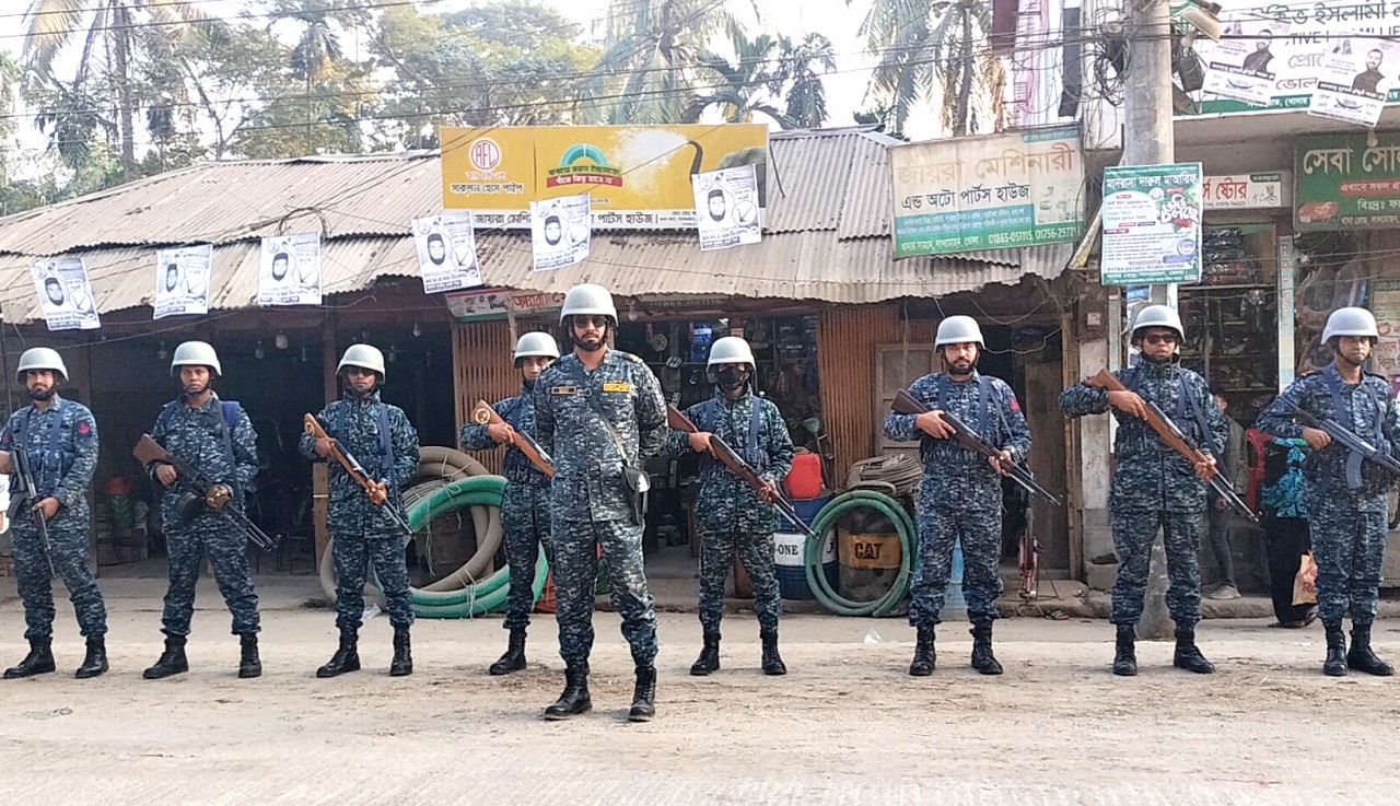 লালমোহন প্রতিনিধি : দ্বাদশ জাতীয় সংসদ নির্বাচনে আইনশৃঙ্খলা পরিস্থিতি স্বাভাবিক রাখার লক্ষ্যে ভোলার লালমোহন উপজেলায় কাজ শুরু করেছে বাংলাদেশ নৌবাহিনী। এরই অংশহিসেবে বুধবার (৩ জানুয়ারি) বিকালে লালমোহন পৌরশহরে ফুটপেট্রোলিং করেছে নৌবাহিনীর লালমোহন কন্টিনজেন্টের একটি প্লাটুনের সদস্যরা। লালমোহন থানার মোড় থেকে ফুটপেট্রোলিং শুরু করে চৌরাস্তার মোড়ে গিয়ে শেষ হয়।