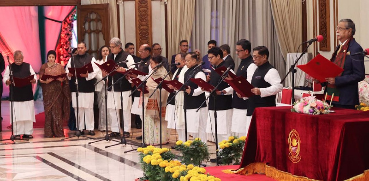 বাংলাদেশের প্রতিষ্ঠাতা জাতির পিতার বড় মেয়ে ও আওয়ামী লীগ সভাপতি শেখ হাসিনা আজ পঞ্চমবারের মতো প্রধানমন্ত্রী হিসেবে শপথ নেওয়ার পর ৩৭ সদস্যের মন্ত্রিসভা নিয়ে টানা চতুর্থ মেয়াদে সরকার গঠন করেছেন। তাঁর মন্ত্রিপরিষদে ২৫ জন মন্ত্রী ও ১১ জন প্রতিমন্ত্রী রয়েছেন। সন্ধ্যা ৭টা- ৬ মিনিটে বঙ্গভবনের দরবার হলে শেখ হাসিনা ও তাঁর নতুন মন্ত্রীদের শপথবাক্য পাঠ করান রাষ্ট্রপতি মো. সাহাবুদ্দিন। শপথ গ্রহণের পর শেখ হাসিনা শপথ ও গোপনীয়তার শপথে স্বাক্ষর করেন।