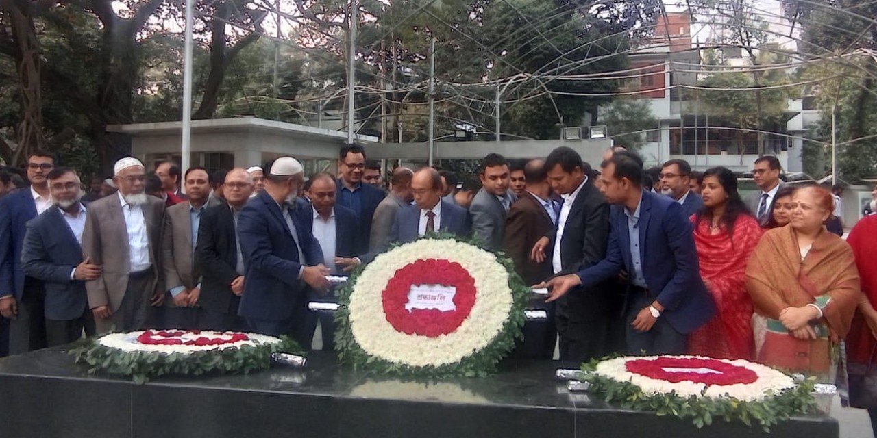 জাতির পিতা বঙ্গবন্ধু শেখ মুজিবুর রহমানের প্রতিকৃতিতে শ্রদ্ধাঞ্জলি