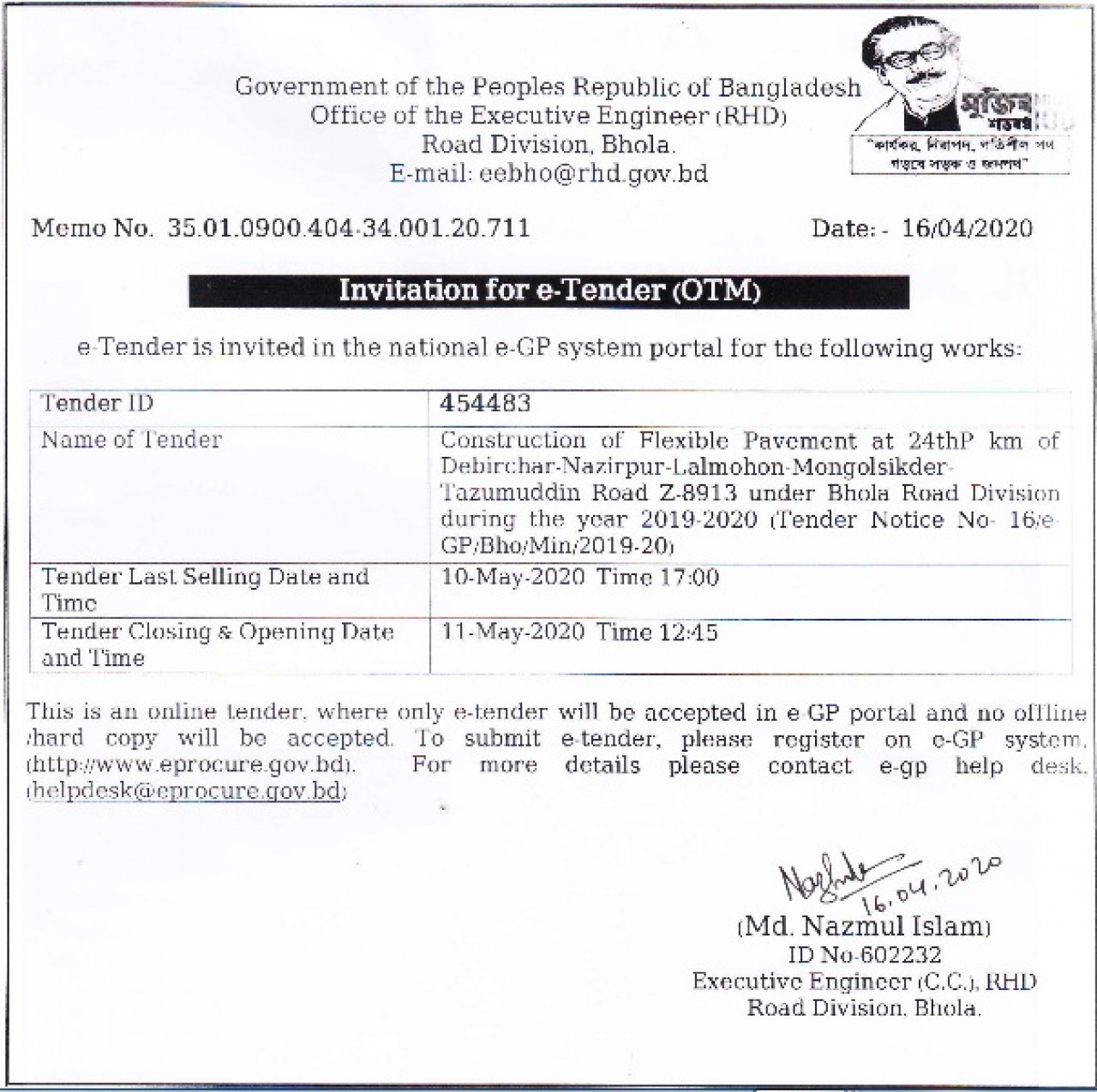 ভোলা সড়ক ও জনপদ বিভাগের টেন্ডার নোটিশ ....