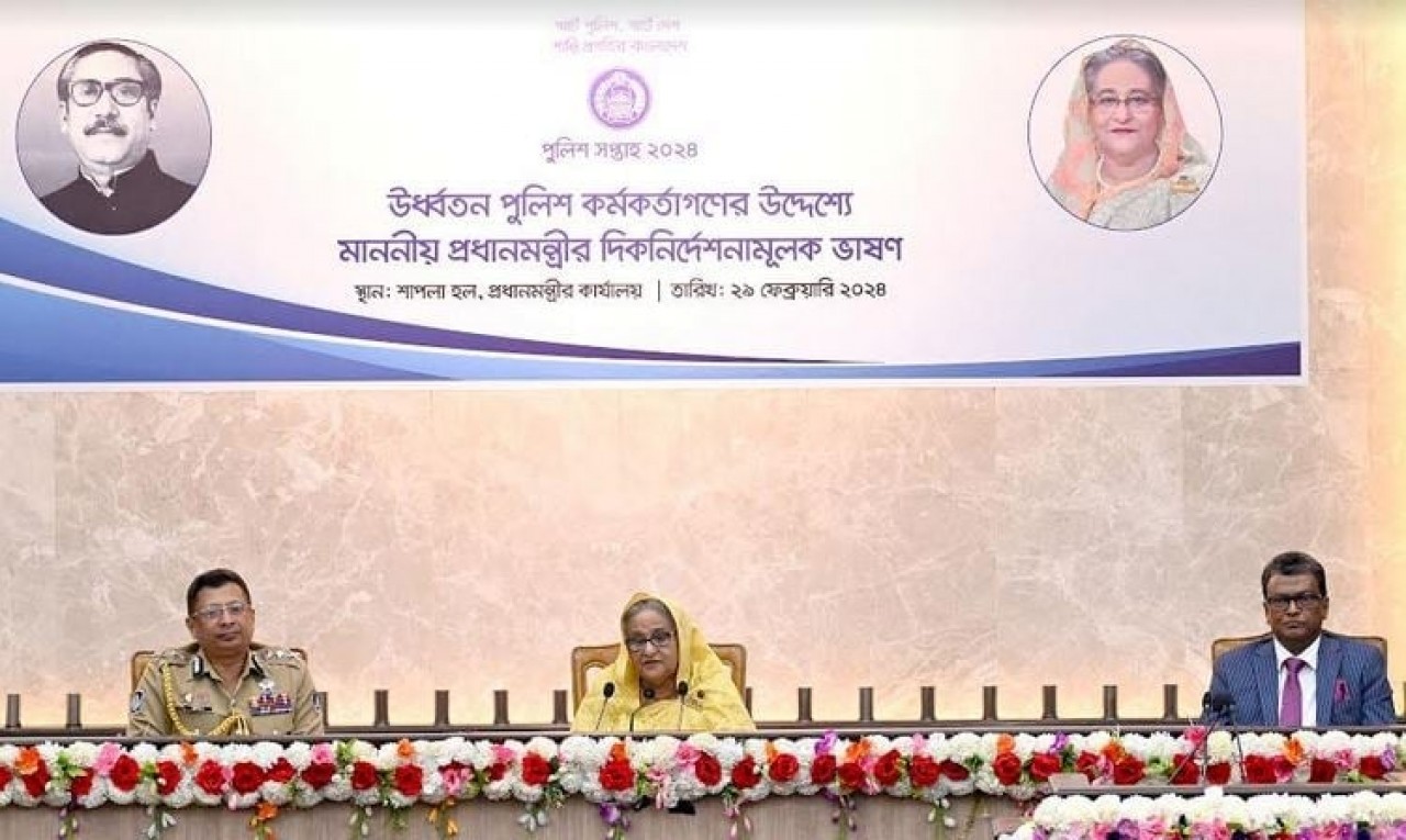 প্রধানমন্ত্রী আজ তাঁর কার্যালয়ের (পিএমও) শাপলা হলে ‘পুলিশ সপ্তাহ-২০২৪’ উপলক্ষ্যে বাংলাদেশ পুলিশের উর্ধ্বতন কর্মকর্তাদের সঙ্গে সভায় দেওয়া ভাষণে একথা বলেন।