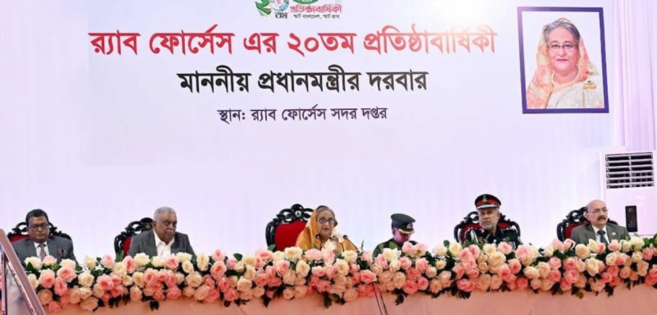 শেখ হাসিনা আজ সকালে র্যাপিড এ্যাকশন ব্যাটালিয়ান (র্যাব) ফোর্সেস এর ২০তম প্রতিষ্ঠাবার্ষিকী উপলক্ষ্যে র্যাব সদর দপ্তর কুর্মিটোলায় আয়োজিত অনুষ্ঠানে প্রধান অতিথির ভাষণে একথা বলেন।