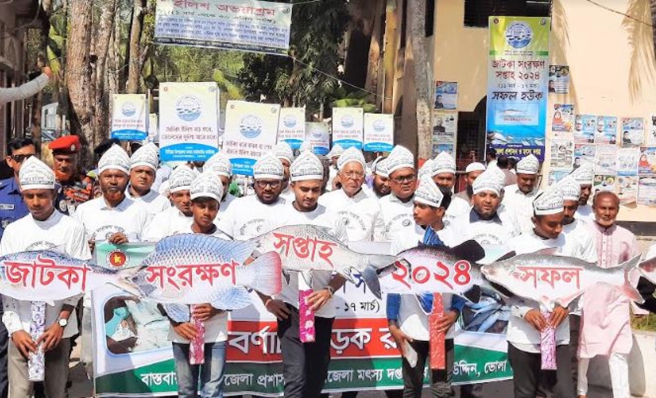 বোরহানউদ্দিন প্রতিনিধি : ভোলার বোরহানউদ্দিনে 'ইলিশ হলো মাছের রাজা, জাটকা ধরলে হবে সাজা’ প্রতিপাদ্যে জাটকা সংরক্ষণ সপ্তাহ উদ্বোধন করা হয়েছে। সোমবার নানা জাঁকজমক কর্মসূচির মধ্য দিয়ে উপজেলা প্রশাসন ও জেলা মৎস্য দপ্তরের উদ্যোগে ১১ মাচ থেকে ১৭ মার্চ পর্যন্ত সপ্তাহব্যাপী কর্মসূচীর আনুষ্ঠানিক সূচনা হয়।