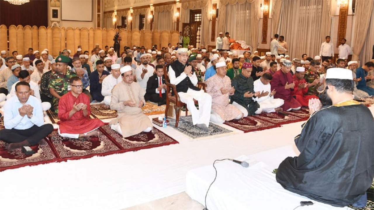 মিলাদ মাহফিল ও মোনাজাত পরিচালনা করেন বঙ্গভবন জামে মসজিদের পেশ ইমাম মুফতি মাওলানা সাইফুল কাবির।
