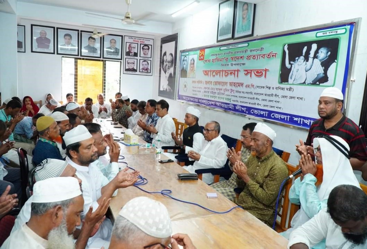 ভোলায় জেলা আওয়ামী লীগ আয়োজিত প্রধানমন্ত্রী শেখ হাসিনার স্বদেশ প্রত্যাবর্তন দিবসের আলোচনা সভা