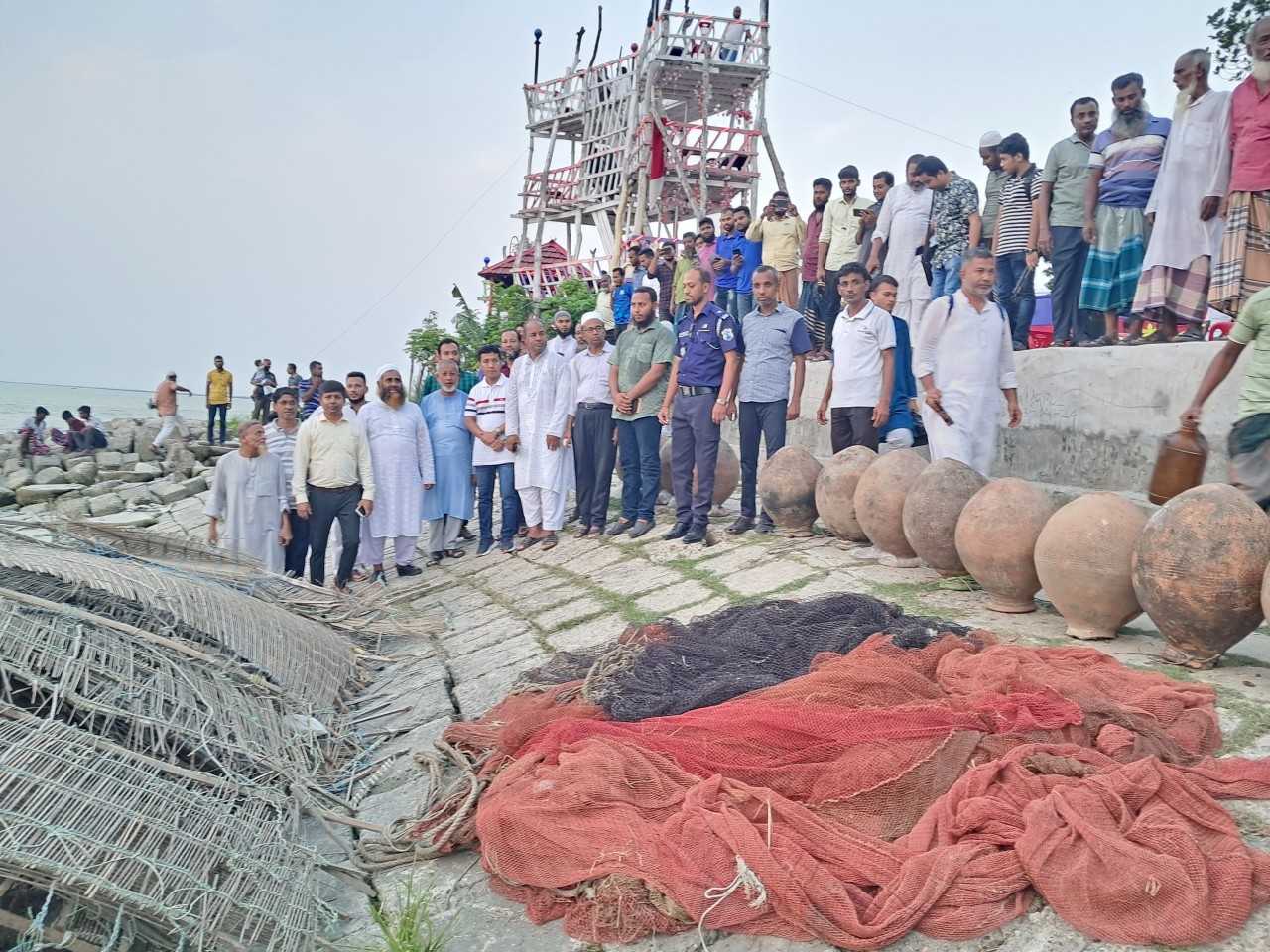বাংলার কণ্ঠ প্রতিবেদক : ভোলায় মেঘনা নদী থেকে পাঙ্গাস মাছের অবৈধ পোনা সিকারের ৫টি চাই ধ্বংস করা হয়েছে। শুক্রবার বিকালে ভোলা সদর উপজেলার তুলাতুলি মৎসঘাট সংলগ্ন ঘাটের পাশে এই অবৈধ চাই ধ্বংস করা হয়। এসময় পাঙ্গেসর পোনার জন্য খাবার তৈরির পাত্র হিসাবে ব্যবহার করা ১২ টি মটকা ও একটি বেহুন্দি জাল পুড়িয়ে ধ্বংস করা হয়। এর আগে দেশীয় পাঙ্গাসের পোনা রক্ষায় সংশ্লিষ্ট স্টোকহোল্ডার নিয়ে এক মতবিনিময় সভা অনুষ্ঠিত হয়।