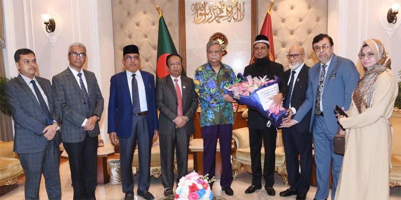 রাষ্ট্রপতি মোঃ সাহাবুদ্দিনের সঙ্গে চট্টগ্রাম আন্তর্জাতিক ইসলামী বিশ্ববিদ্যালয়ের একটি প্রতিনিধিদল আজ বঙ্গভবনে সৌজন্য সাক্ষাৎ করেন। প্রতিনিধিদলের নেতৃত্ব দেন বিশ্ববিদ্যালয়ের ট্রাস্টি বোর্ডের চেয়ারম্যান অধ্যাপক আবু রেজা মুহাম্মদ নেজামুদ্দিন নদভী।