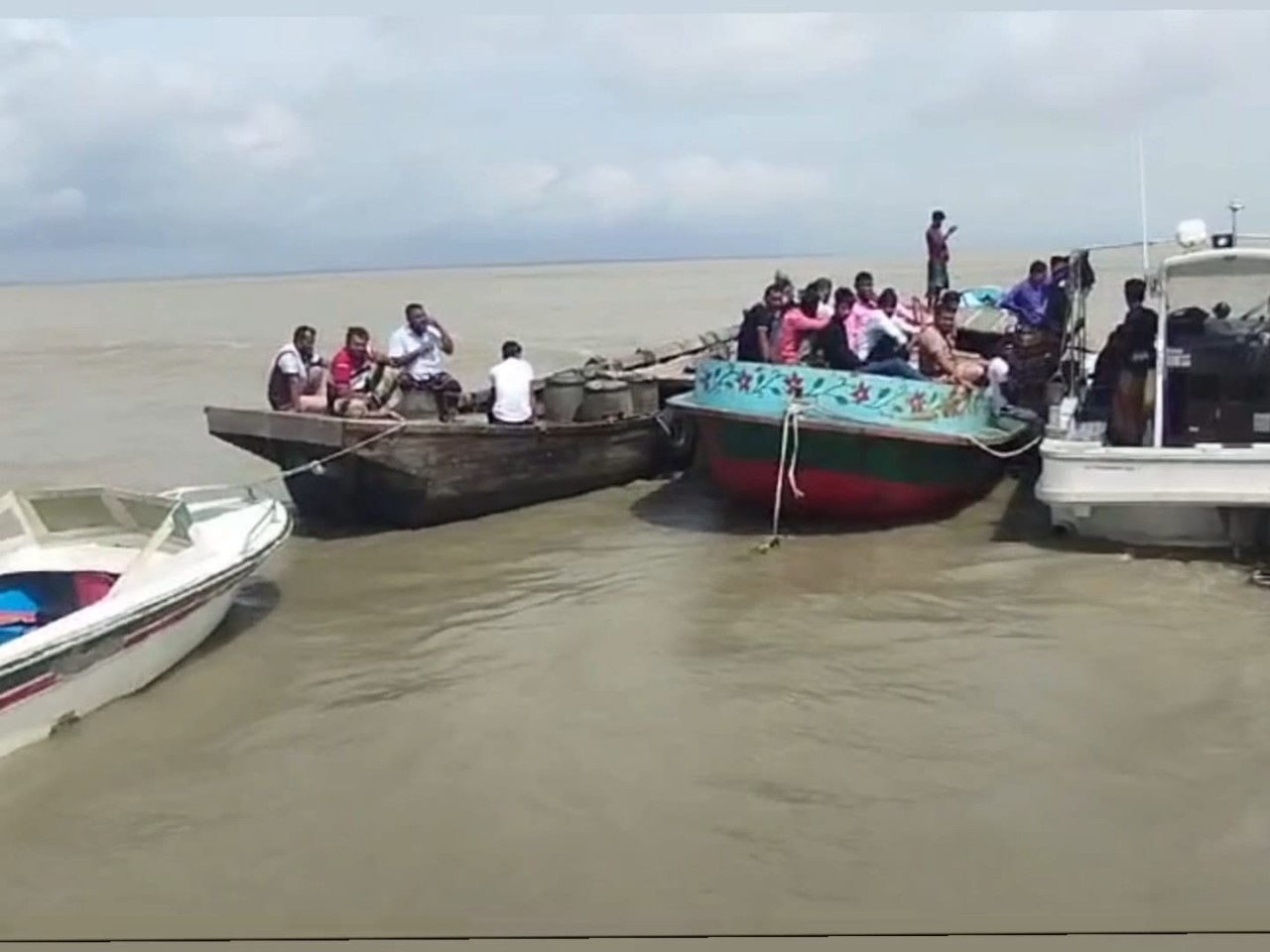 নৌ পুলিশ,কোস্টগার্ড ও ফায়ার সার্ভিসের টিমের উদ্ধার তৎপরতা শুরু তীব্র স্রোতে উদ্ধার কাজ ব্যাহত
