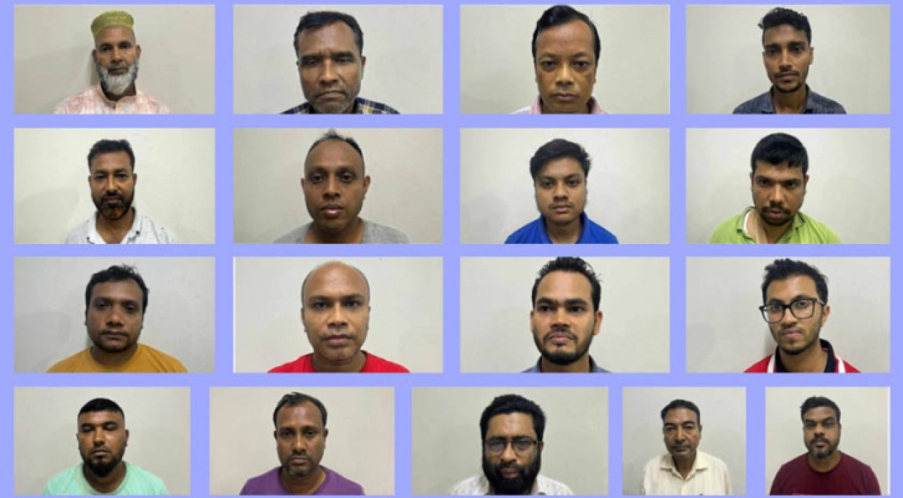 আসামিরা হলেন- সৈয়দ আবেদ আলী (৫২), মো. খলিলুর রহমান, সাজেদুল ইসলাম (৪১), ঢাবির সাবেক শিক্ষার্থী বর্তমানে মিরপুরের ব্যবসায়ী আবু সোলেমান মো. সোহেল (৩৫), মো. সাখাওয়াত হোসেন (৩৪), সায়েম হোসেন ও বেকার যুবক লিটন সরকার।