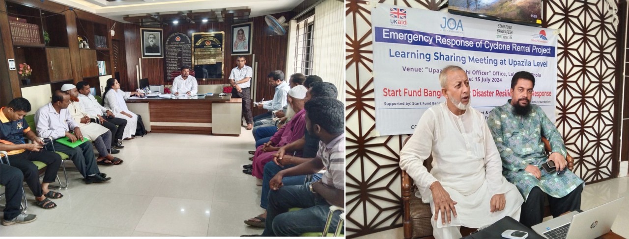 সভায় স্টার্ট ফাউন্ডেশন বাংলাদেশের সহায়তায় এবং কোস্ট ফাউন্ডেশনের বাস্তবায়নে গত ৪৫ দিনে লালমোহন উপজেলার লর্ডহার্ডিঞ্জ, ধলীগৌরনগর ও বদরপুর ইউনিয়নের ৩২০টি পরিবারের মাঝে মোবাইল ব্যাংকিংয়ের মাধ্যমে নগদ অর্থ এবং বিভিন্ন উপকরণ প্রদানের তথ্য তুলে ধরেন কোস্ট ফাউন্ডেশনের সহকারী পরিচালক শাহিনুর ইসলাম।