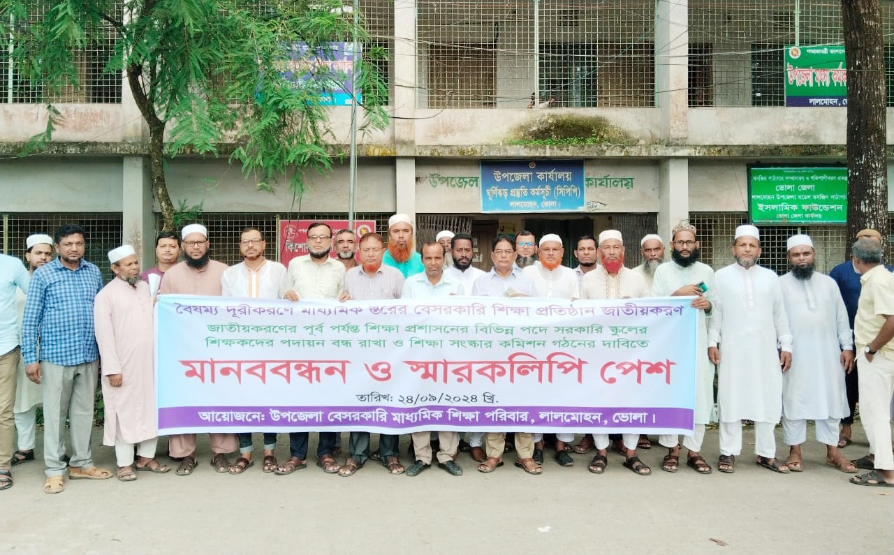 মানববন্ধনে বৈষম্য দূরীকরণে মাধ্যমিক স্তরের বেসরকারি শিক্ষা প্রতিষ্ঠান জাতীয়করণের পূর্বপর্যন্ত শিক্ষা প্রশাসনের বিভিন্ন পদে সরকারি স্কুলের শিক্ষকদের পদায়ন বন্ধ রাখা ও শিক্ষা সংস্কার কমিশন গঠনের দাবি জানান শিক্ষকরা।