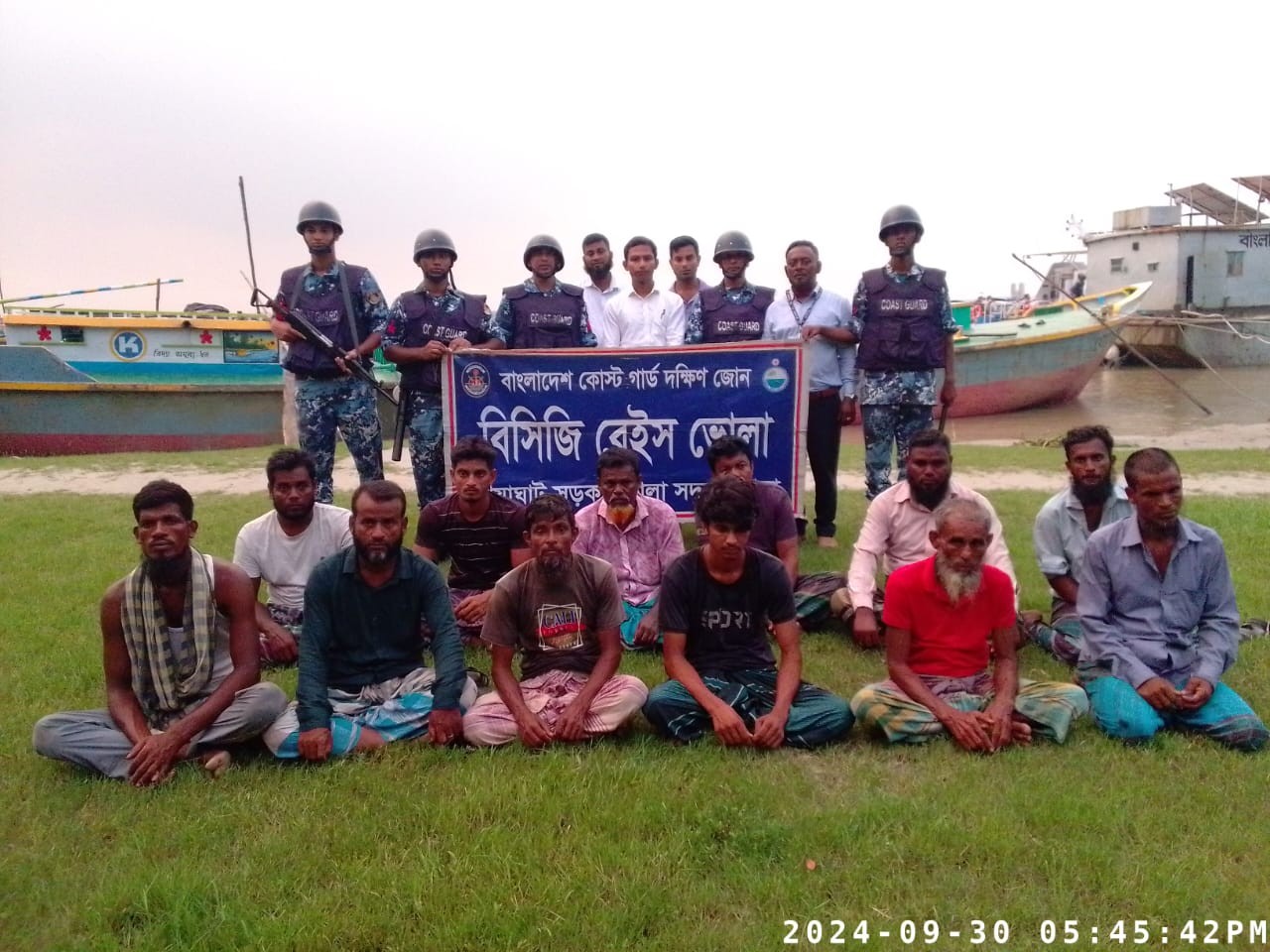 কোস্টগার্ড জানায়, সোমবার দুপুর থেকে বিকাল পর্যন্ত গোপন সংবাদের ভিত্তিতে বাংলাদেশ কোস্ট গার্ড দক্ষিণ জোন অধীনস্থ বিসিজি বেইস ভোলা কর্তৃক সেকশন কমান্ডার এম শফিক এর নেতৃত্বে ভোলা জেলার সদর উপজেলাধীন তেঁতুলিয়া নদীর চটকিমারা টাওয়ার সংলগ্ন এলাকায় একটি বিশেষ অভিযান পরিচালনা করা হয়। এ সময় অবৈধভাবে বালু উত্তোলনের সময় ০৩ টি ড্রেজার (চন্দ্রমোহন লোড ডেজার, বিএসকে নুর ড্রেজিং প্রকল্প-১ ও বিসমিল্লাহ লোড ড্রেজার) এবং ০৭ টি বাল্কহেড (১. খোয়াজ খিজির, ২.এমবি ইসমাইল- ২, ৩. মা মারুফা-১, ৪. এমবি গয়জোদ্দি, ৫. এমবি সুমাইয়া, ৬. রাশেদ পরিবহন ও ৭. বিসমিল্লাহ) সহ ১৫ জন বালু উত্তোলনকারীকে আটক করা হয়। পরবর্তীতে সহকারী কমিশনার ও নির্বাহী ম্যাজিস্ট্রেট রহমত উল্লাহ, ভোলা কর্তৃক মোবাইল কোর্ট পরিচালনা করে ড্রেজার প্রতি টাকা ২০,০০০/০০ (টাকা বিশ হাজার মাত্র) এবং বাল্কহেড প্রতি টাকা ৩০,০০০/০০ (টাকা ত্রিশ হাজার মাত্র) করে সর্বমোট টাকা ২,৭০,০০০/০০ (টাকা দুই লক্ষ সত্তর হাজার মাত্র) জরিমানা আদায় করা হয়। আটককৃত ব্যক্তিদের জব্দকৃত ড্রেজার ও বাল্কহেডসহ ছেড়ে দেওয়া হয়।
