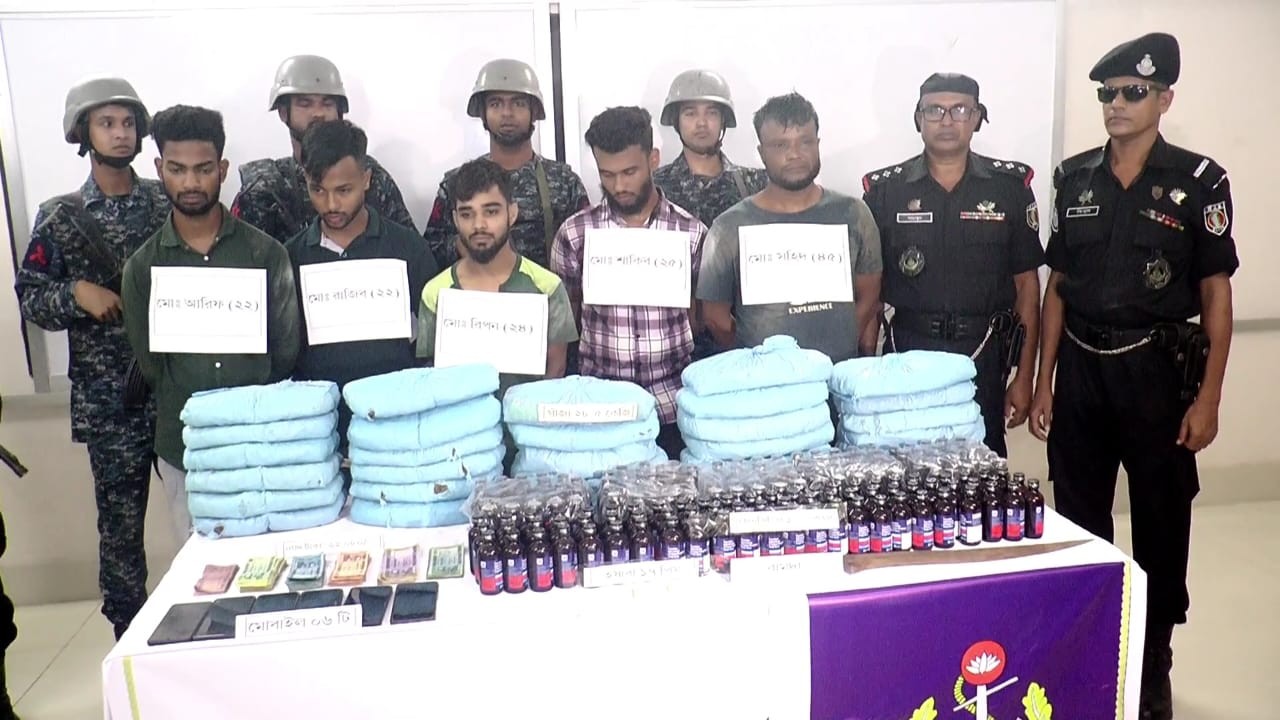 পরে রাত ১২টার দিকে ভোলা সদরে যোগীরঘোল সংলগ্ন বাংলাদেশ নৌবাহিনীর অস্থায়ী ক্যাম্পে প্রেস ব্রিফিংয়ে বাংলাদেশ নৌবাহিনী লেঃ মুফতাদি উল ইসলাম সাংবাদিকদের জানান,গোপন সংবাদের ভিত্তিতে ভোলা সদর উপজেলার বাপ্তা ইউনিয়নের পাইলট বাজার এলাকায় বাংলাদেশ নৌবাহিনী,পুলিশ ও র্যাব এর সমন্বয়ে একটি যৌথ অভিযান পরিচালনা করা হয়।এসময় পুলিশের তালিকা ভুক্ত চিহ্নিত মাদক ব্যবসায়ী শহীদুলের গোপন আস্তানা তল্লাশি চালিয়ে ১৮৭ বোতল ফেনসিডিল, ২৮ কেজি ৫০০ গ্রাম গাঁজা, ১৭ পিস ইয়াবা ট্যাবলেট, ৩২ হাজার ৮০ টাকা, ১ টি রাম দা,৬ টি মোবাইল সহ ৫ জন কে আটক করা হয়েছে।