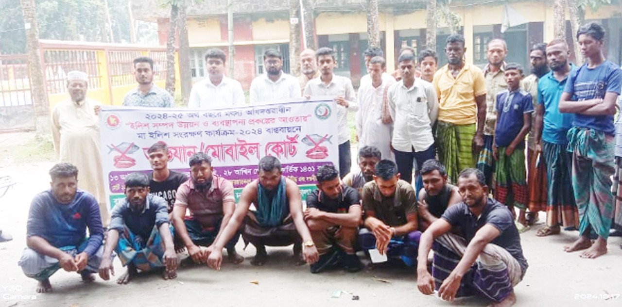 ফখরে আজম পলাশ, তজুমদ্দিন থেকে : ভোলার তজুমদ্দিনের মেঘনায় মা ইলিশ প্রজনন রক্ষার নিষেধাজ্ঞা অমান্য করে মাছ শিকারের দায়ে ১২ জেলেসহ নৌকা, জাল ও মাছ আটক করেন কোষ্টগার্ডের সহায়তায় মৎস্য অফিসের অভিযান পরিচালনাকারী দল। পরে ভ্রাম্যমান আদালতের মাধ্যমে ১০জনকে আর্থিক জরিমানা ও অপ্রাপ্ত বয়সের দুইজনকে মুচলেখা নিয়ে ছেড়ে দেয়া হয়। জাল আগুনে পুড়ে ধ্বংস করা হয়।
