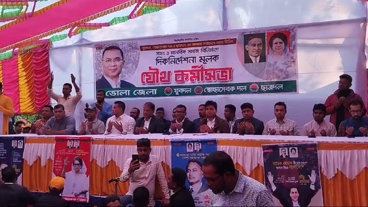 ভোলায় সাম্য ও মানবিক সমাজ বিনির্মাণ দিকনির্দেশনা মূলক যৌথ কর্মীসভায় জেলা যুবদলের সভাপতি জামাল উদ্দিন লিটনের সভাপতিত্বে প্রধান অতিথি বক্তব্য রাখেন কেন্দ্রীয় যুবদলের যুগ্ম সাধারণ সম্পাদক বিল্লাল হোসেন তারেক। প্রধান বক্তা ছিলেন, কেন্দ্রীয় সেচ্ছাসেবক দলের সাংগঠনিক সম্পাদক নাজমুল হাসান। বিশেষ অতিথির বক্তব্য রাখেন, কেন্দ্রীয় সেচ্ছাসেবক দলের যুগ্ম সম্পাদক সরোয়ার ভুইয়া রুবেল, কেন্দ্রীয় যুবদলের সাবেক তথ্য ও প্রযুক্তি সম্পাদক জাহিদ হাসান, কেন্দ্রীয় যুবদলের সাবেক সদস্য সাইদুর রহমান শামিম, কেন্দ্রীয় ছাত্রদলের সিনিয়র যুগ্ন সাধারণ সম্পাদক শ্যামল মালুম, যুগ্ম সাধারণ সম্পাদক ফারহান আরিফ, যুগ্ম সম্পাদক নাকিব চৌধুরী, প্রমুখ।