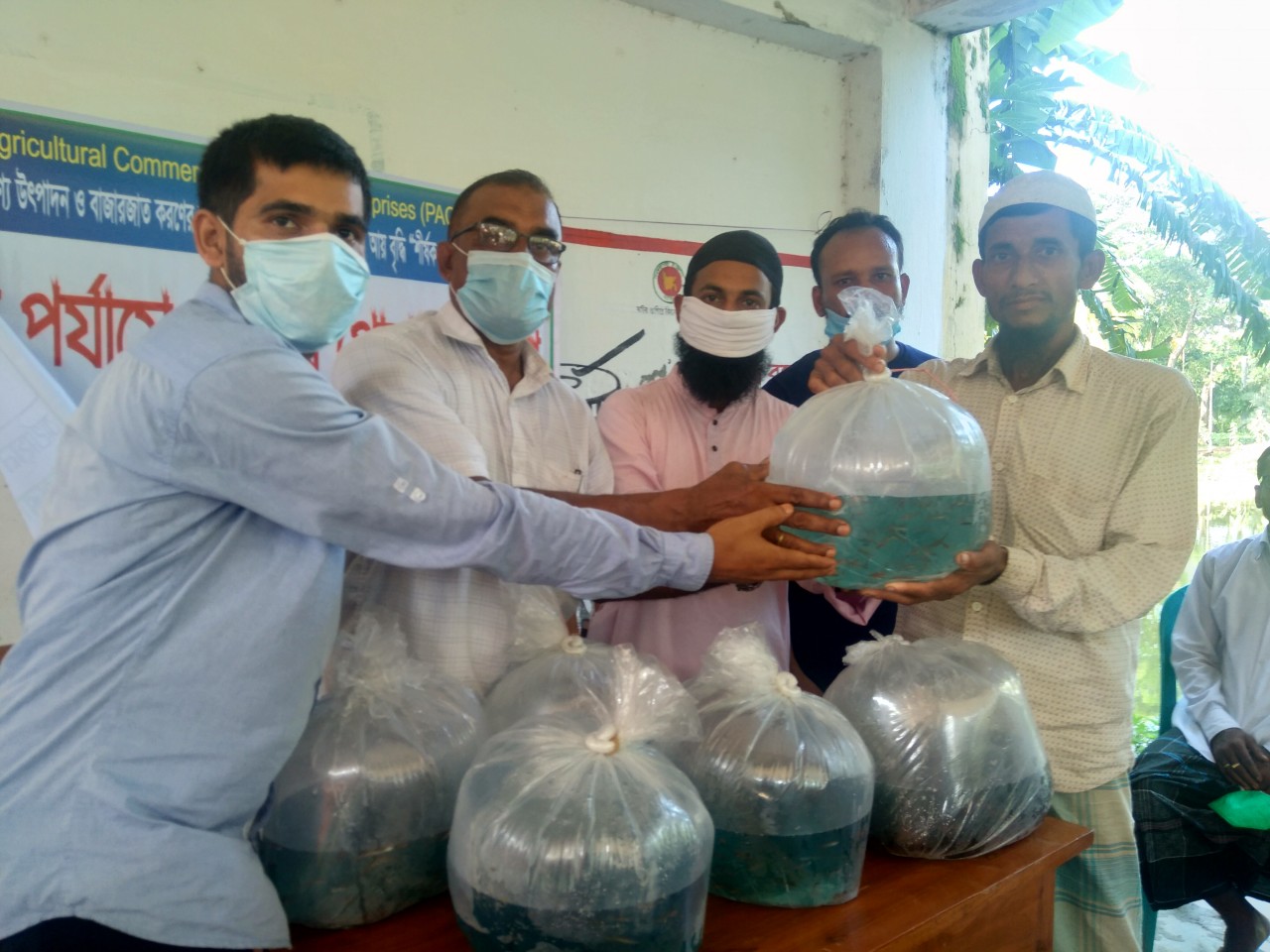পল্লী কর্ম সহায়ক ফাউন্ডেশন (পিকেএসফ) এর প্রকল্পের আওতায় গ্রামীন জন উন্নয়ন সংস্থা এসব জেলে উপকরন বিতরন করেন। এছাড়াও তারা চাষীদের মধ্য বীজ বিতরন করেন। মাছের পোনার মধ্যে রয়েছে পাপদা, শিং, তেলাপিয়া, গলদা চিংড়ি ও ওজন মাপার মেশিন।