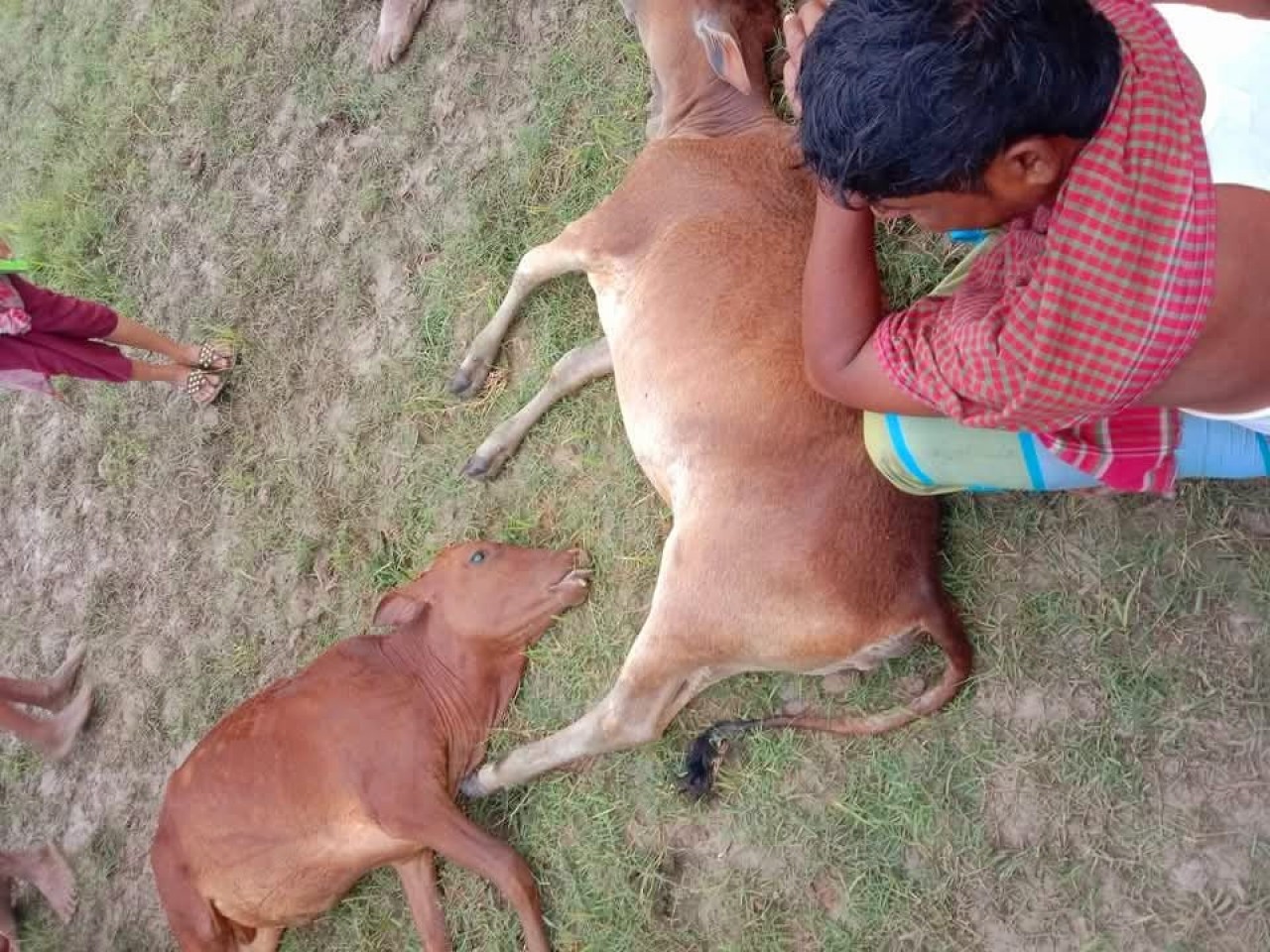 ক্ষতিগ্রস্ত আলাউদ্দিন জানান, ভোরে হঠাৎ করে ঝরো হাওয়াসহ কালবৈশাখী ঝড় শুরু হয়। ঝড়ের মাঝে হটাৎ বিকট শব্দে গোয়ালের কাছাকাছি বজ্রপাতের ঘটনা ঘটে। এই সময় গোয়াল ঘরে থাকা একটি গাভী এবং একটি বাছুর মারা যায়। এতে প্রায় দেড় লক্ষ টাকার ক্ষতি হয়েছে বলে জানান তিনি।
