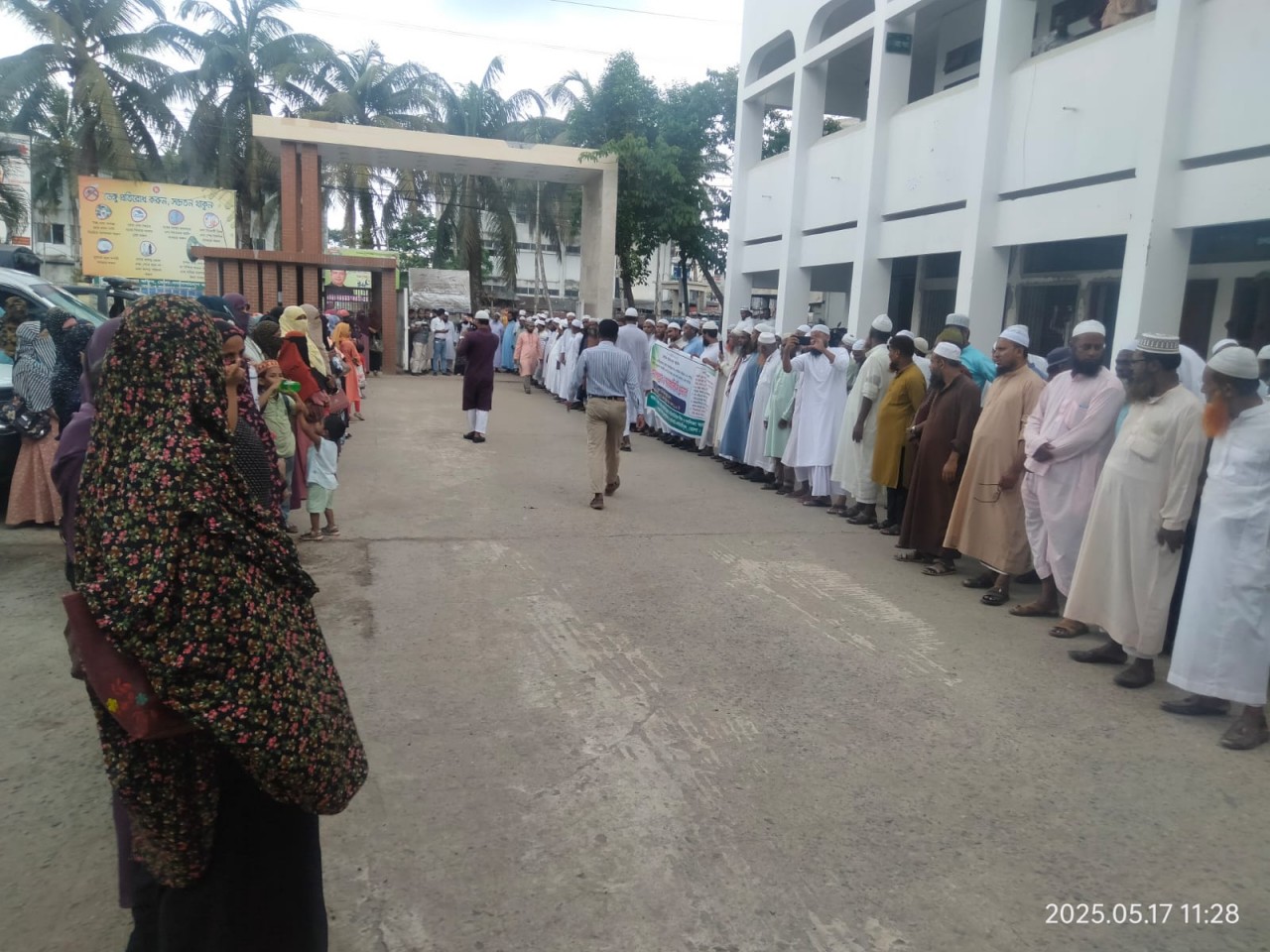 মানববন্ধন চলাকালে বক্তারা বলেন, দীর্ঘ ৩২ বছর ধরে ইসলামিক ফাউন্ডেশন কর্তৃক পরিচালিত “মসজিদ ভিত্তিক শিশু ও গণশিক্ষা কার্যক্রম” সুষ্ঠু ও সুন্দরভাবে চলমান আছে। গত ৩১ ডিসেম্বর প্রকল্পের ৭ম পর্যায় শেষ হয়েছে। পহেলা জানুয়ারি ২০২৫ সাল থেকে পরবর্তী ৮ম পর্যায়ের কাজ শুরু হয়েছে। কিন্তু প্রায় সাড়ে ৪ মাস অতিবাহিত হলেও ৮ম পর্যায় অনুমোদন হয়নি। ফলে প্রকল্পের আওতাভুক্ত প্রায় ৮০ হাজার শিক্ষক, কর্মকর্তা-কর্মচারীরা বেতনভাতা পাচ্ছেন না। বিনা বেতনে পবিত্র রমজান এবং ঈদুল ফিতর পার করলেও আসন্ন ঈদুল আযহার পূর্বে বকেয়া বেতন-ভাতা পাওয়ার দাবিতে সারা বাংলাদেশে তারা আন্দোলনে নেমেছে। তাদের দাবি ঈদের আগেই বকেয়া বতন ভাতা পরিশোধ এবং প্রকল্পকে রাজস্ব খাতে নিতে হবে।