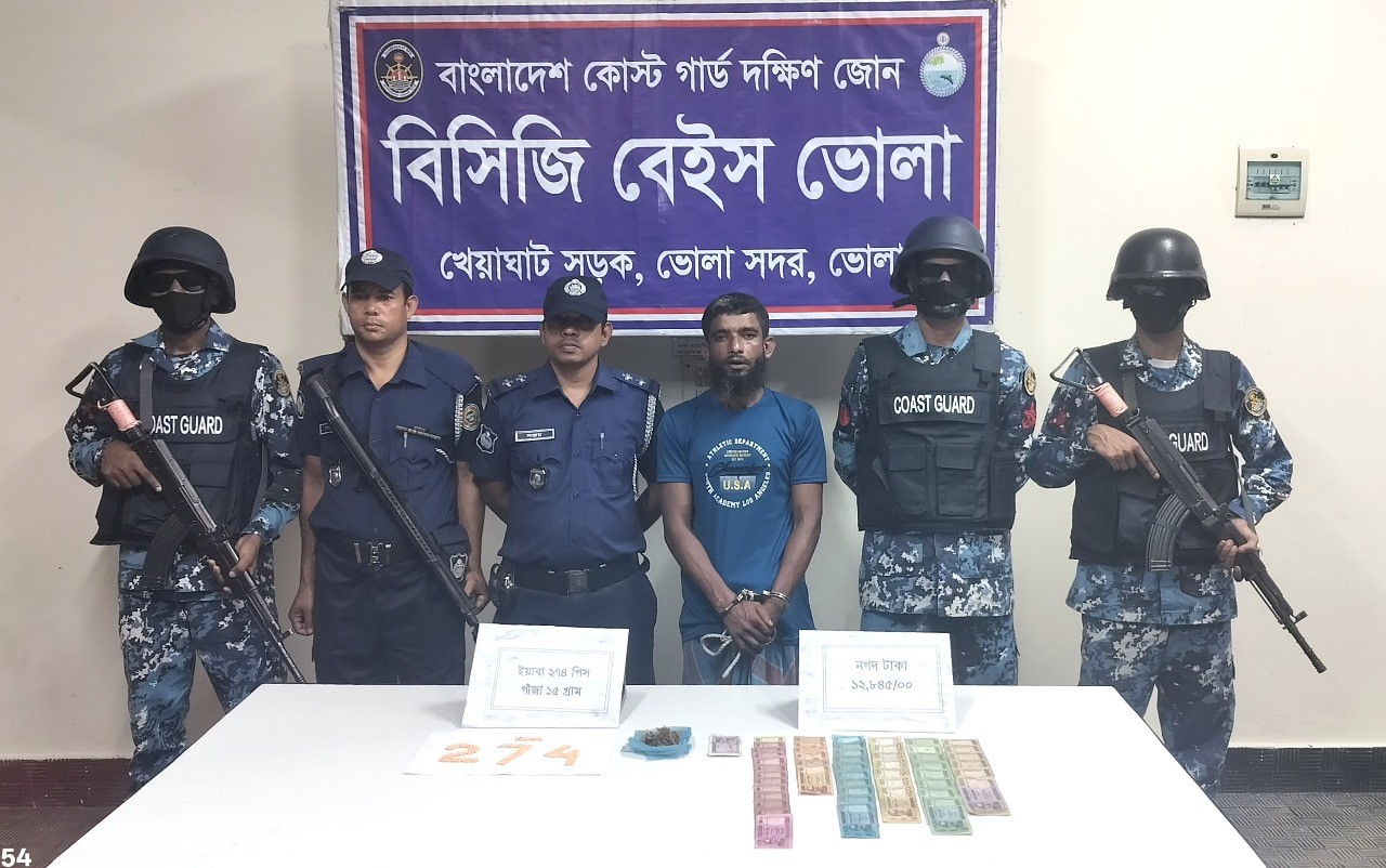আজ সোমবার ৯ জুন সকালে কোস্ট গার্ড মিডিয়া কর্মকর্তা লেফটেন্যান্ট কমান্ডার হারুন-অর-রশীদ এক প্রেস বিজ্ঞপ্তিতে জানান, মাদকের বিরুদ্ধে সরকারের “জিরো ট্রলারেন্স নীতি” বাস্তবায়নের লক্ষ্যে কাজ করে যাচ্ছে বাংলাদেশ কোস্ট গার্ড। এরই ধারাবাহিকতায় গোপন সংবাদের ভিত্তিতে রবিবার মধ্যরাত ৩টায় কোস্ট গার্ড ও পুলিশের সমন্বয়ে ভোলার সদর উপজেলার ইলিশা এবং সামান্দা ইউনিয়নে পৃথক দুটি যৌথ অভিযান পরিচালনা করা হয়। এসময় ১ লক্ষ ৪১ হাজার ৫ শত টাকা মূল্যের ২৭৪ পিস ইয়াবা, ১৫ গ্রাম গাঁজা এবং নগদ ১২ হাজার ৮ শত ৪৫ টাকা সহ ১ জন মাদক ব্যবসায়ীকে আটক করা হয়।