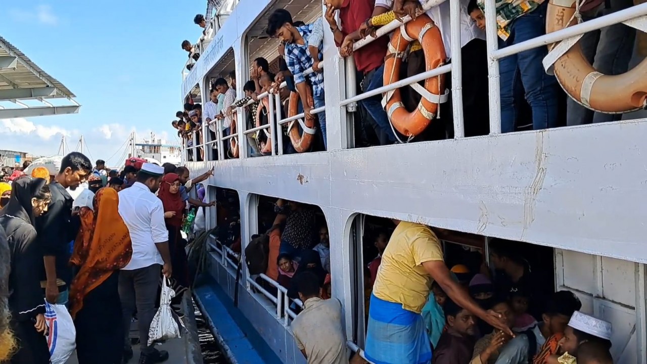 বাংলার কণ্ঠ প্রতিবেদক: ঈদ শেষে দ্বীপ জেলা ভোলা থেকে কর্মস্থলে পরিবার পরিজন নিয়ে ফিরতে শুরু করেছে হাজার হাজার মানুষ। আজ বৃহস্পতিবার সকালে ভোলা সদর উপজেলার ইলিশা লঞ্চঘাটে ছিলো যাত্রীদের উপচে পড়া ভীড়। ইলিশা-লক্ষীপুর রুটের লঞ্চ ও সী ট্রাক গুলোতে দুই থেকে তিনগুণ অতিরিক্ত যাত্রী ঝুঁকি নিয়ে চলাচল করে। নৌ যানের তুলনায় অতিরিক্ত যাত্রী হওয়াতে অনেকেই লঞ্চঘাটে অপেক্ষা করতে থাকে ঘন্টার পর ঘন্টা। আবার অনেকে জীবনের ঝুঁকি নিয়ে অবৈধ ট্রলারে মেঘনা নদী পাড়ি দিচ্ছেন।