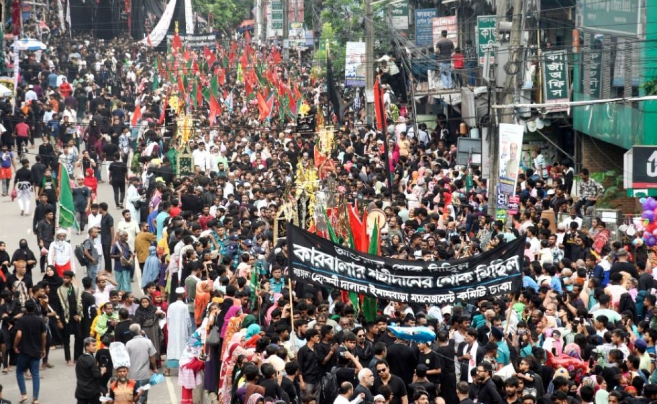 আজ সকাল ১০টায় রাজধানীর ৪০০ বছরের প্রাচীণ হোসনি দালান থেকে এই শোক মিছিল শুরু হয়। পুলিশসহ বিভিন্ন বাহিনীর নিশ্ছিদ্র নিরাপত্তা বলয়ের মধ্যে এই মিছিল অনুষ্ঠিত হয়েছে।