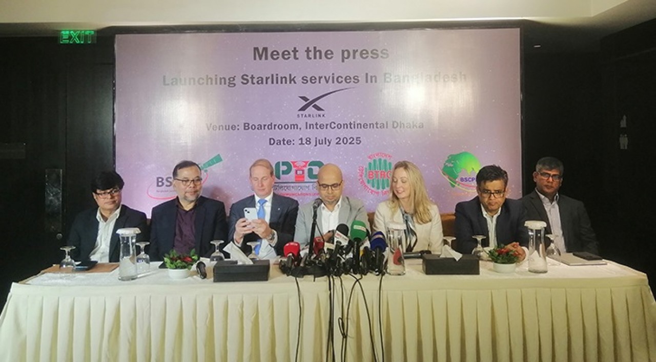 শুক্রবার (১৮ জুলাই) বিকেলে হোটেল ইন্টারকন্টিনেন্টালের বোর্ড রুমে মিট দ্য প্রেসে স্টারলিংকের আনুষ্ঠানিক যাত্রা শুরুর ঘোষণা দেন প্রধান উপদেষ্টার ডাক, টেলিযোগাযোগ ও তথ্য প্রযুক্তি মন্ত্রণালয়ের দায়িত্বপ্রাপ্ত বিশেষ সহকারী ফয়েজ আহমদ তৈয়্যব।