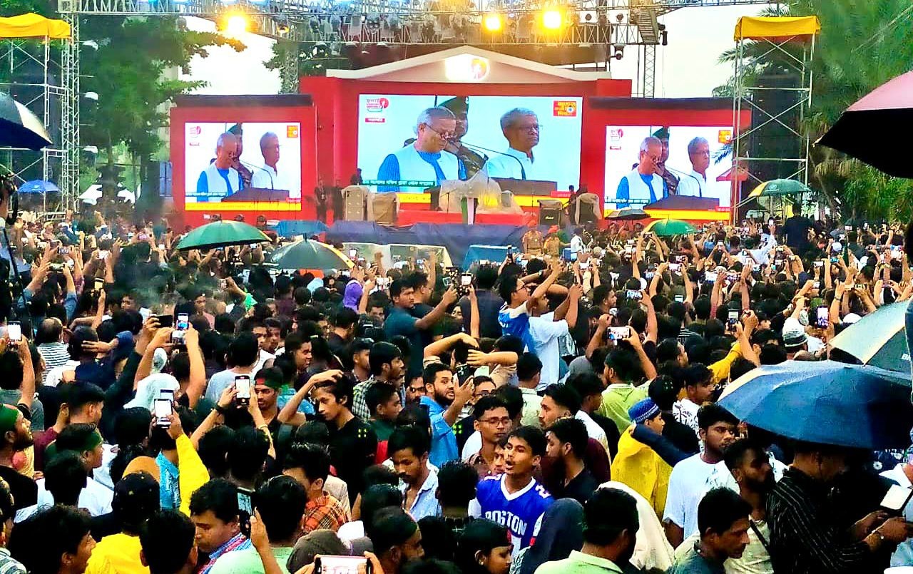 এ সময় প্রধান উপদেষ্টার সঙ্গে মঞ্চে বিএনপি, জামায়াতে ইসলামী ও এনসিপিসহ বিভিন্ন রাজনৈতিক দলের শীর্ষস্থানীয় নেতৃবৃন্দ উপস্থিত ছিলেন।