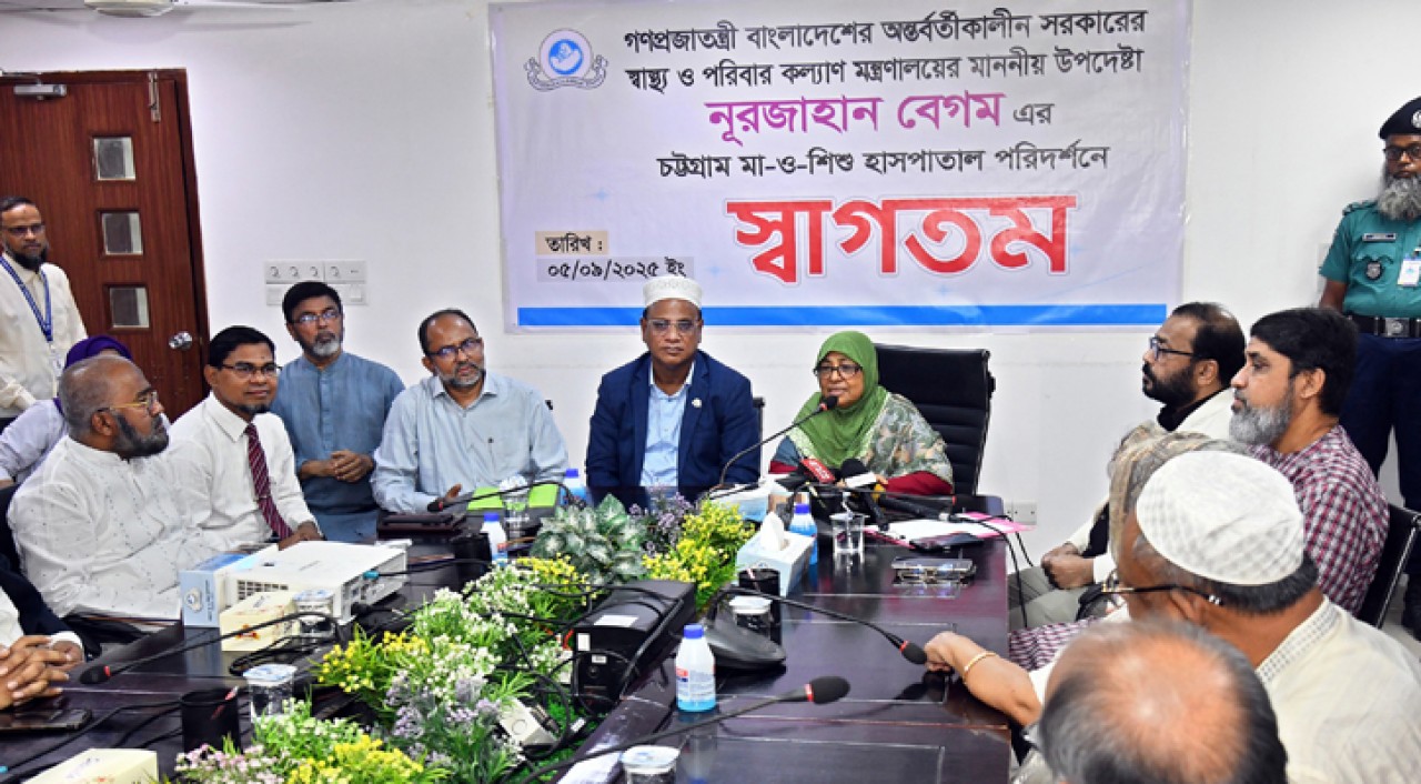 স্বাস্থ্য ও পরিবার কল্যাণ মন্ত্রণালয়ের উপদেষ্টা নূরজাহান বেগম বলেছেন, চট্টগ্রামে সরকারি এবং বেসরকারি পর্যায়ে স্বাস্থ্যসেবা খুবই অপ্রতুল। সরকারি পর্যায়ে শুধুমাত্র চট্টগ্রাম মেডিক্যাল কলেজ ও চট্টগ্রাম জেনারেল হাসপাতালের ওপর আমাদের নির্ভর করতে হচ্ছে।