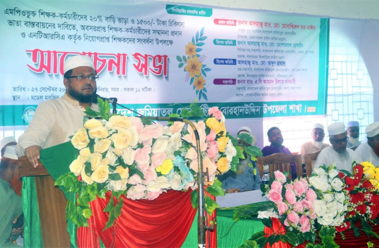 স্বাগত বক্তব্য রাখেন বোরহানউদ্দিন উপজেলা জমিয়াতুল মোদাররেছীনের সহ সভাপতি ও অধ্যক্ষ মজমের হাট ফাজিল মাদরাসা মাওলানা মো. ফয়জুল আলম।