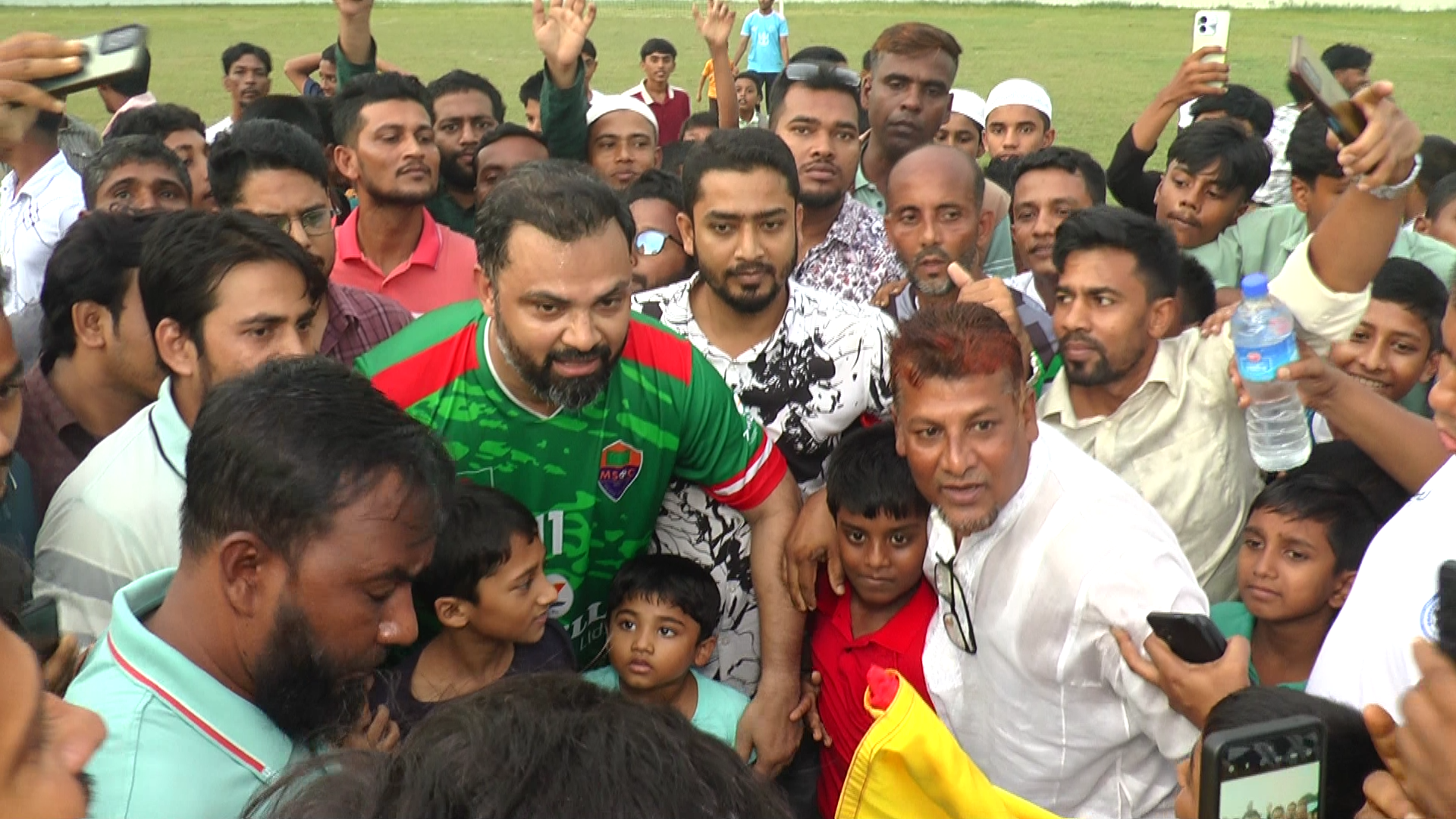 নির্ধারিত সময় ৬০ মিনিট শেষে রেফারির সমাপ্ত বাঁশি বাজার সাথে সাথে গ্যালারি ছেড়ে শত শত দর্শক ছুটে আসেন মাঝ মাঠে। ঘিরে ধরেন সাফ জয়ের নায়ক আমিনুল হককে। স্বপ্নের ফুটবলারকে ছুঁয়ে দেখা আর কাছে পাওয়ার স্মৃতি ধরে রাখতে ক্যামেরা বন্দির প্রতিযোগিতা। নিজ জন্মভূমি মানুষের ভালোবাসায় মুগ্ধ আমিনুল নিজেও।