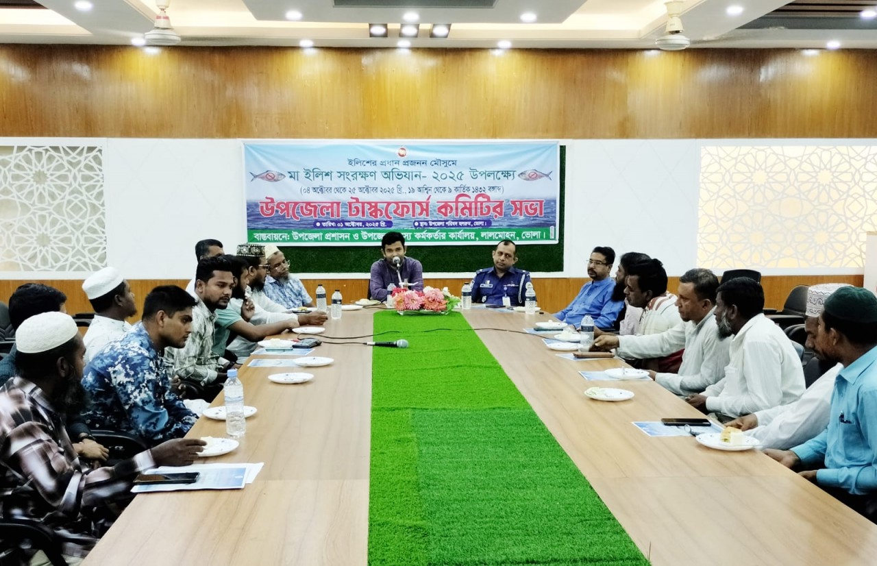 লালমোহন প্রতিনিধি: ভোলার লালমোহন উপজেলায় মা ইলিশ সংরক্ষণ অভিযান-২০২৫ বাস্তবায়নের লক্ষ্যে টাস্কফোর্স কমিটির সভা অনুষ্ঠিত হয়েছে। বুধবার সকালে উপজেলা প্রশাসন ও মৎস্য দফতরের আয়োজনে উপজেলা পরিষদ হলরুমে এ সভা হয়।