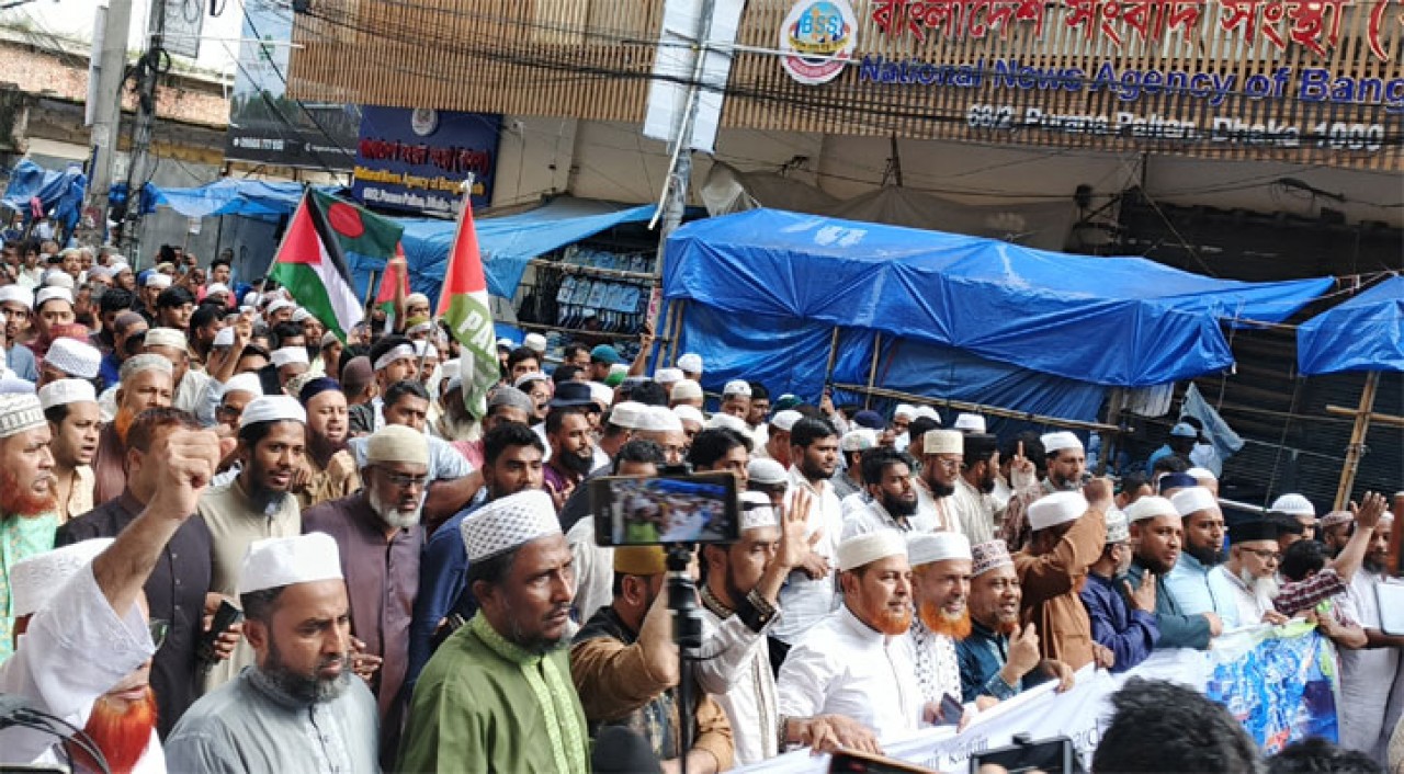 গাজায় ত্রাণবাহী জাহাজ বহর ‘ফ্লোটিলা’তে ইসরায়েলি হামলা ও মানবাধিকার কর্মীদের গ্রেপ্তারের প্রতিবাদে এ কর্মসূচি পালন করে জামায়াত।