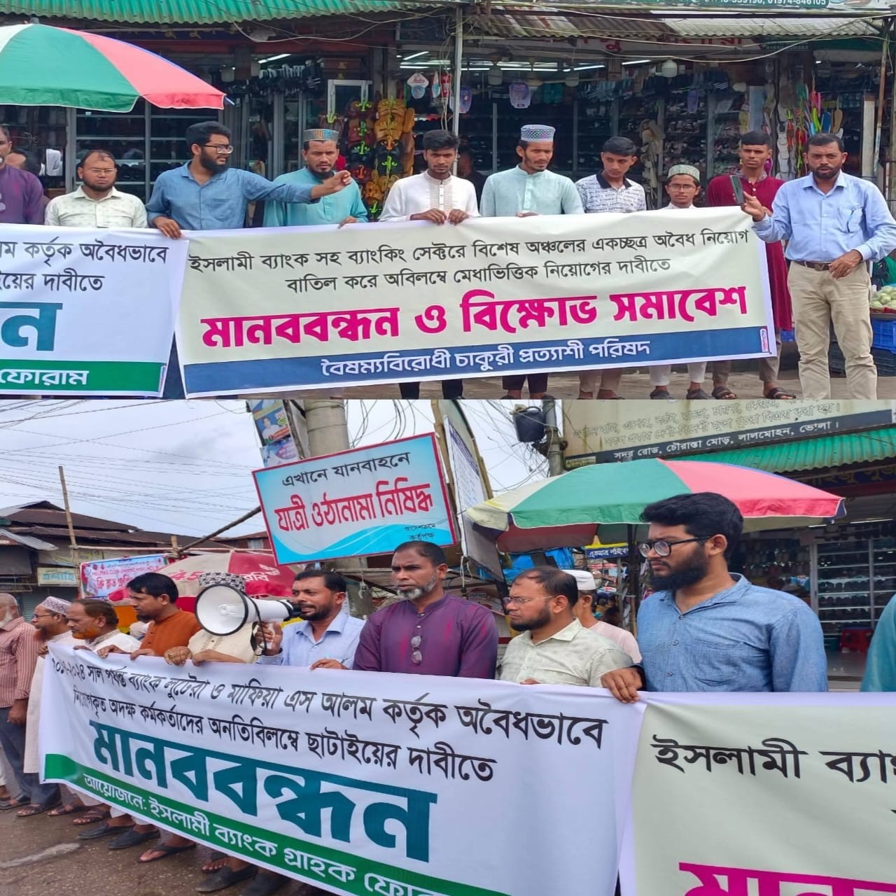 সমাবেশে বক্তারা বলেন, ২০১৭ থেকে ২০২৪ সাল পর্যন্ত এস আলম গ্রুপ কর্তৃক ইসলামী ব্যাংকসহ বিভিন্ন ব্যাংকে যোগ্যতাসম্পূর্ণ লোকবল নিয়োগ না দিয়ে ক্ষমতার অপব্যবহার করে অবৈধভাবে নিয়োগ দেওয়া হয়েছে। এসব অবৈধ নিয়োগ অবিলম্বে বাতিল করে দেশের সকল অঞ্চলে মেধা ও যোগ্যতার ভিত্তিতে নতুন করে নিয়োগ দিতে হবে।