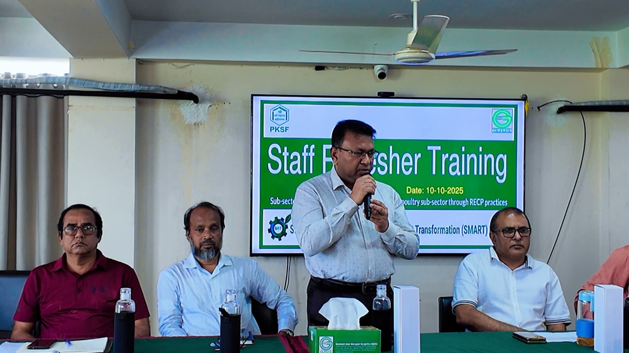 বাংলার কন্ঠ প্রতিবেদক : সাসটেইনেবল মাইক্রো এন্টারপ্রাইজ অ্যান্ড রেজিলিয়েন্ট ট্রান্সফরমেশন স্মার্ট প্রকল্পের পোলট্রি ও ফিশারিজ উপ-প্রকল্পের স্টাফ ওরিয়েন্টেশন ও রিফ্রেশার্স ট্রেনিং অনুষ্ঠিত হয়েছে।