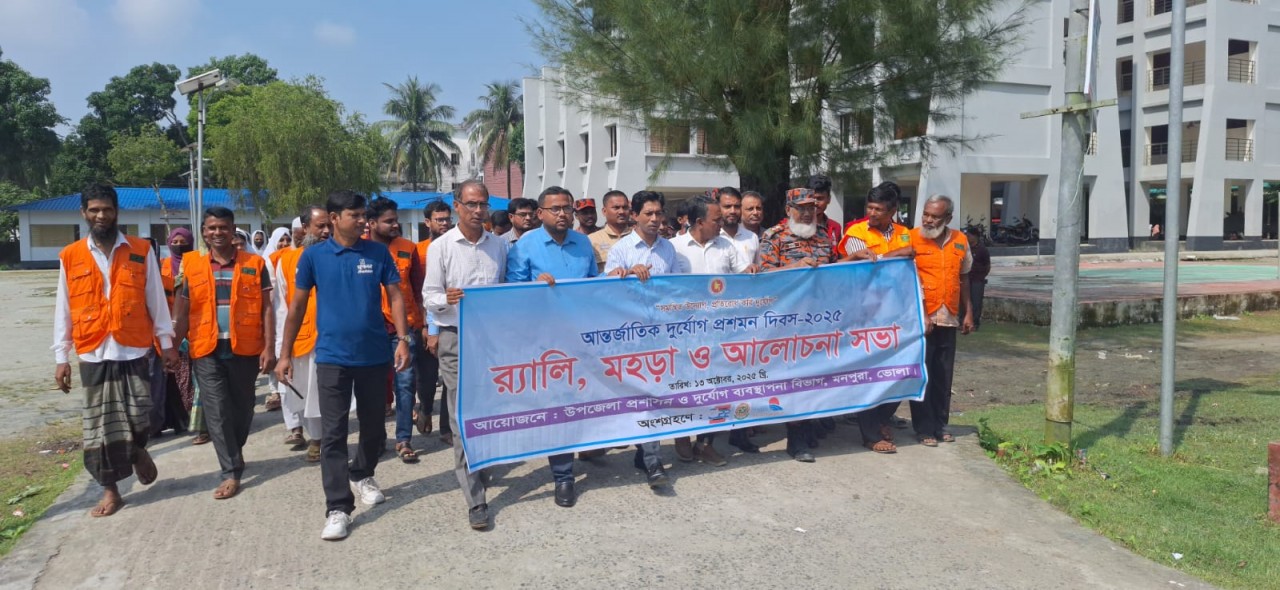 মনপুরা প্রতিনিধি : ভোলার মনপুরায় র্যালি, আলোচনা সভা ও মহড়ার মাধ্যমে আন্তর্জাতিক দুর্যোগ প্রশমন দিবস পালিত হয়েছে।