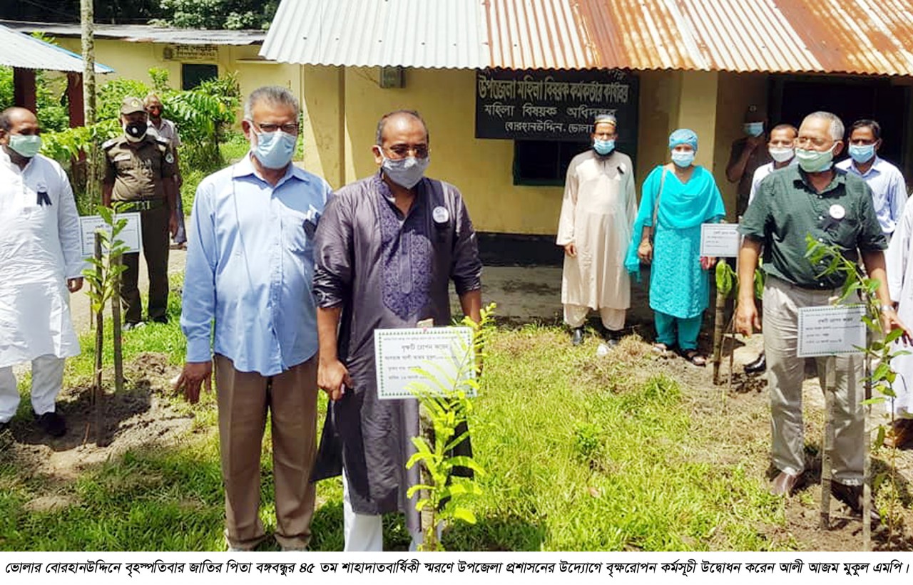 বোরহানউদ্দিন প্রতিনিধি : ভোলার বোরহানউদ্দিনে জাতির পিতা বঙ্গবন্ধু শেখ মুজিবুর রহমানের ৪৫ তম শাহাদাতবার্ষিকী স্মরণে উপজেলা প্রশাসনের উদ্যোগে বৃক্ষরোপন কর্মসূচী উদ্বোধন করা হয়েছে। বৃহস্পতিবার দুপুরে ভোলা-২(বোরহানউদ্দিন-দৌলতখান) আসেেনর সংসদ সদস্য আলী আজম মুকুল উপজেলা পরিষদ প্রাঙ্গণের পতিত জমিতে ফলদ,বনজ ও ঔষধী গাছের চারা রোপনের মাধ্যমে ওই কর্মসূচীর উদ্বোধন করেন।