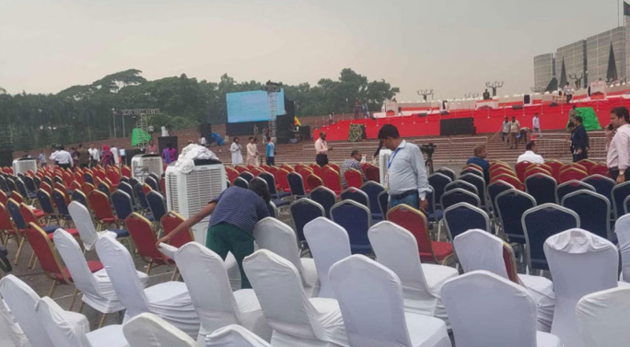 এর আগে বিকেল ৪টায় অনুষ্ঠান শুরু হওয়ার কথা থাকলেও বৈরী আবহাওয়ার কারণে কিছুটা দেরি হয়। বিকেল ৪টা ৩০ মিনিটে আনুষ্ঠানিকভাবে অনুষ্ঠান শুরু হয় ৷