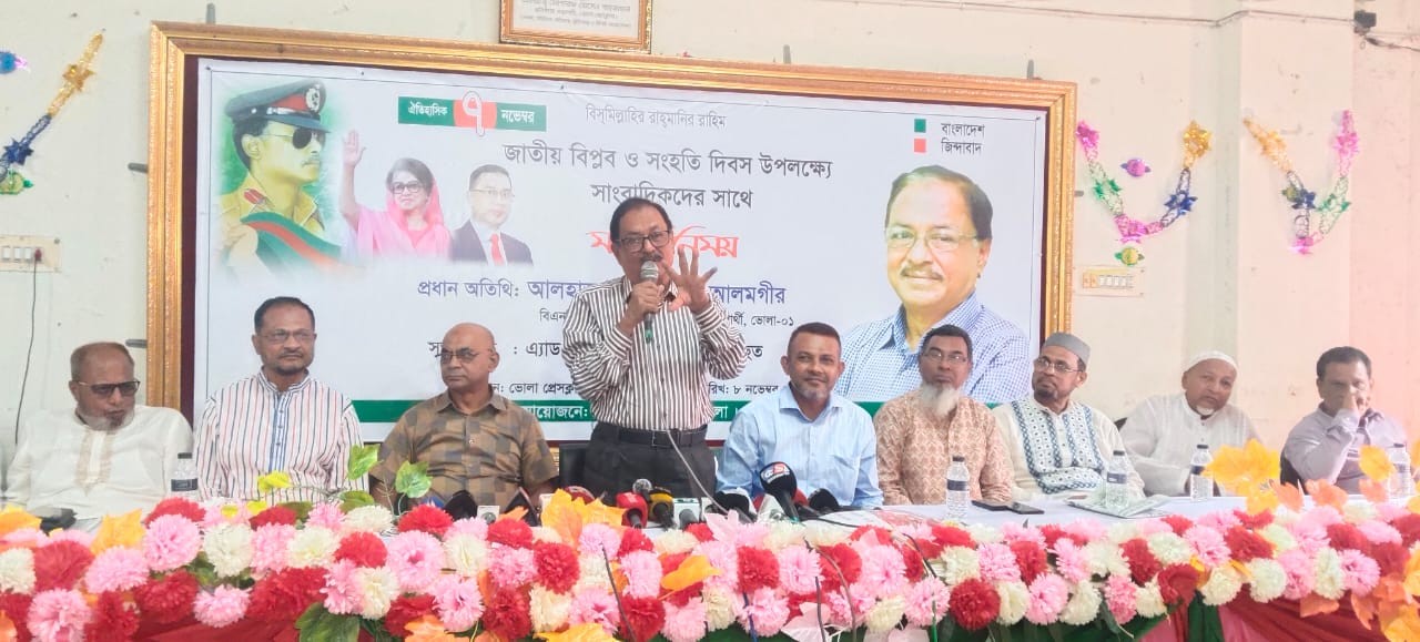 শনিবার (৮ নভেম্বর) বেলা ১১টায় জাতীয় বিপ্লব ও সংহতি দিবস উপলক্ষে ভোলা প্রেসক্লাবে আয়োজিত সাংবাদিকদের সাথে মতবিনিময় সভায় প্রধান অতিথির বক্তব্যে তিনি এ কথা বলেন।
