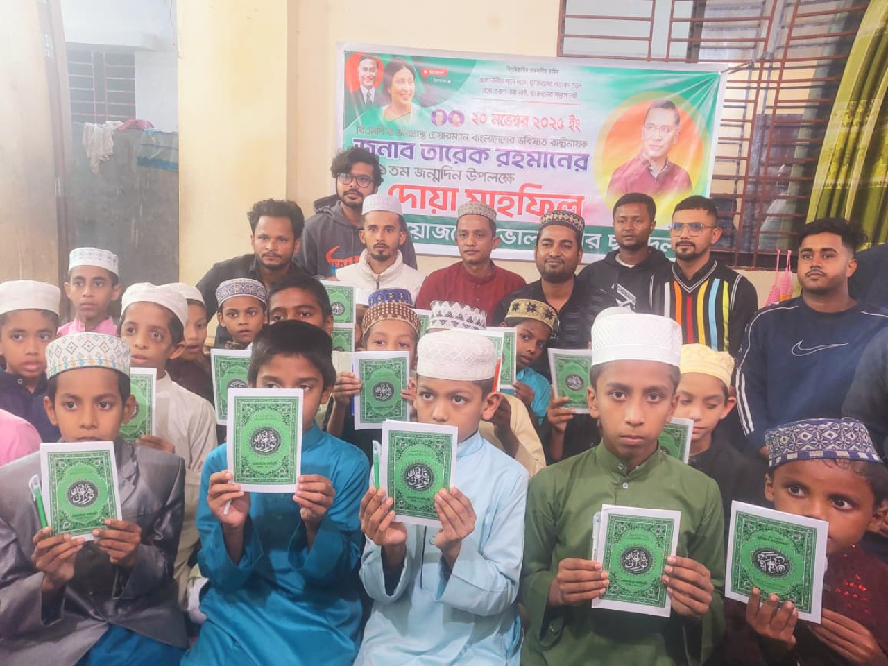 বৃহস্পতিবার ২০ নভেম্বর বিকালে ভোলা পৌরসভা দক্ষিণ চরনাবাদের ৫ নং ওয়ার্ডের মাদরাসায়ে উমর ইবনুল খাত্তাব (রাঃ) মাখরাজু তাহফিজুল কুরআন নূরানী ও নাজরা হিফজ বিভাগের শিক্ষার্থীদের হাতে নূরানী কায়দা, কলমসহ বিভিন্ন ইসলামী শিক্ষা উপকরণ তুলে দেন ছাত্রদল নেতৃবৃন্দ। পরে তারেক রহমানের সুস্বাস্থ্য ও দীর্ঘায়ু কামনায় বিশেষ দোয়া মোনাজাত করা হয়।