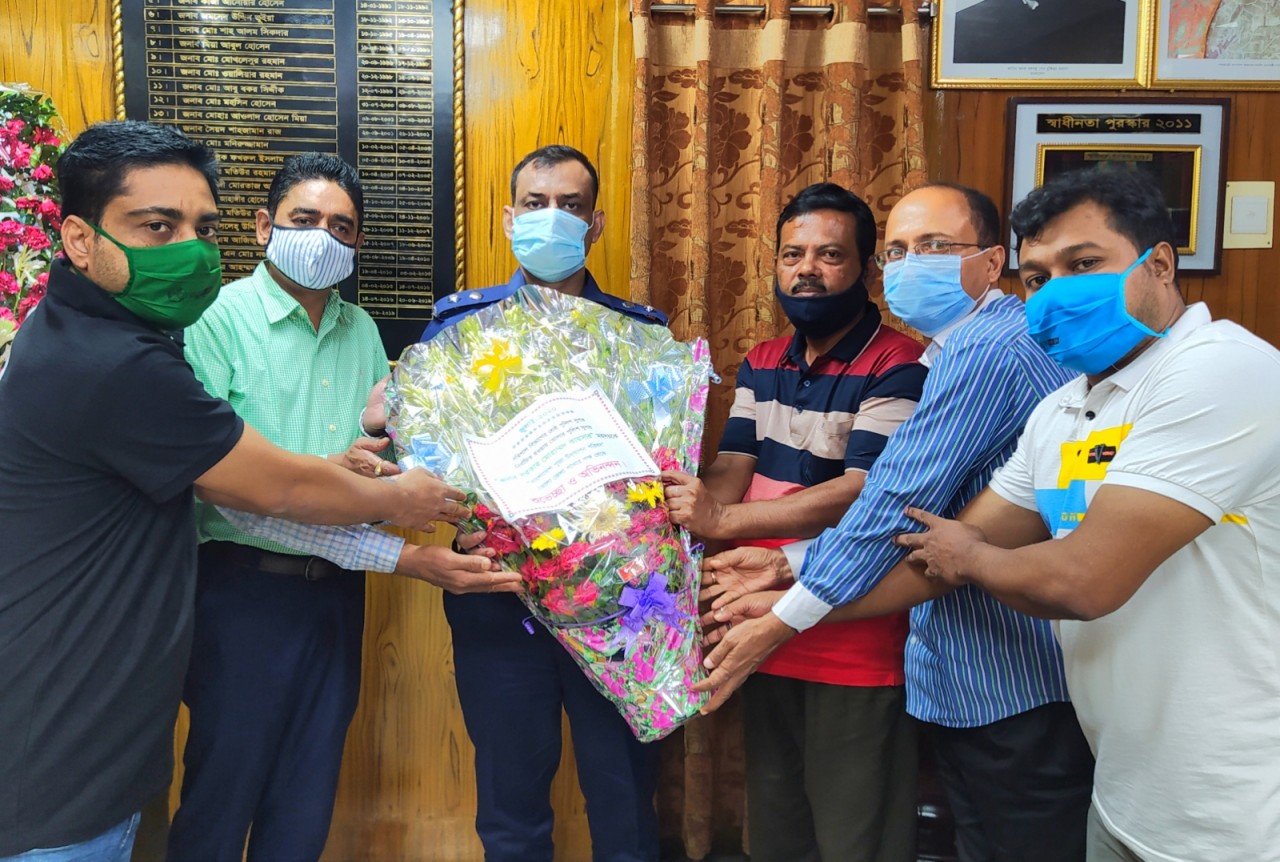বাংলার কন্ঠ প্রতিবেদক: আইন শৃংখলা রক্ষায় গুরুত্বপূর্ন ভূমিকা পালন করায় ২০২০ সালের জুলাই মাসে বরিশাল বিভাগের শ্রেষ্ঠ পুলিশ সুপার হিসেবে নির্বাচিত হওয়ায় ভোলার পুলিশ সুপার সরকার মোহাম্মদ কায়সারকে ফুল দিয়ে শুভেচ্ছা ও অভিনন্দন জানিয়েছে ভোলা জেলা পূজা উদযাপন পরিষদ। আজ বৃহস্পতিবার দুপুরে পুলিশ সুপারের কার্যালয়ে পূজা উদযাপন পরিষদের নেতৃবৃন্দ এক সৌজন্য সাক্ষাৎকারে মিলিত হয়। এসময় করোনা পরিস্থিতির মধ্যে আসন্ন শারদীয় দুর্গাপূজা উদযাপনের বিভিন্ন দিক তুলে ধরেন তারা। সাক্ষাৎকার শেষে পুলিশ সুপারকে ফুল দিয়ে শুভেচ্ছা ও অভিনন্দন জানান তারা।
