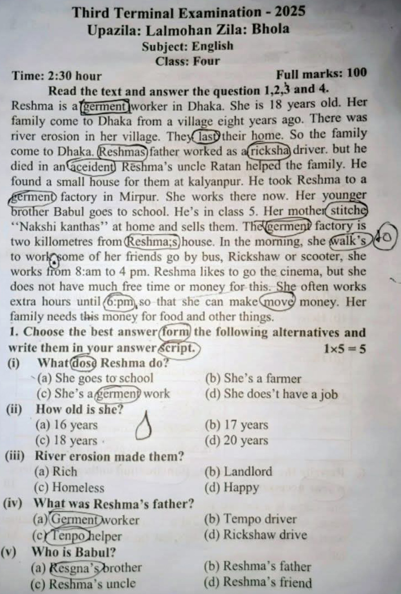 তিনি তার পোস্টে প্রকাশ করেন, ‘প্রশ্নের মধ্যে যদি এত ভুল হয়, তবে যোগ্যতার মাপকাঠি নিয়েও প্রশ্ন ওঠে। তারা কি শুধুই বেতন নেয়? নাকি বসে বসে চা খায়?’ প্রশ্ন রাখেন তিনি। ওই পোস্টের কমেন্টে ৩য় ও ৫ম শ্রেণির প্রশ্নেও ভুল আছে বলে প্রকাশ করেছেন অনেকে। সরকারি প্রাথমিক বিদ্যালয়ের একজন প্রধান শিক্ষক ৫ম শ্রেণির ইংরেজি প্রশ্ন দেখিয়ে তাতেও অসংখ্য ভুল তুলে ধরেন।