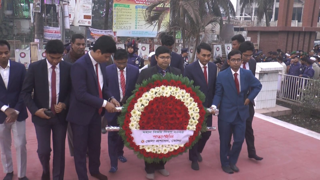 এরপর মুক্তিযুদ্ধে শহীদ মুক্তিযোদ্ধাদের স্মৃতি স্তম্ভে ভোলা জেলা প্রশাসক ডা. শামীম রহমান, পুলিশ সুপার মোঃ শহীদুল্লাহ কায়সার সহ ভোলা পৌর ও উপজেলা প্রশাসন, মুক্তিযোদ্ধা সংসদসহ বিভিন্ন সরকারি-বেসরকারি প্রতিষ্ঠান এবং রাজনৈতিক সংগঠনের পক্ষ থেকে পুষ্পস্তবক অর্পণ করে শহীদদের প্রতি শ্রদ্ধা জানানো হয়। পরে শহীদদের আত্মার মাগফেরাত কামনায় দোয়া ও মোনাজাত অনুষ্ঠিত হয়।