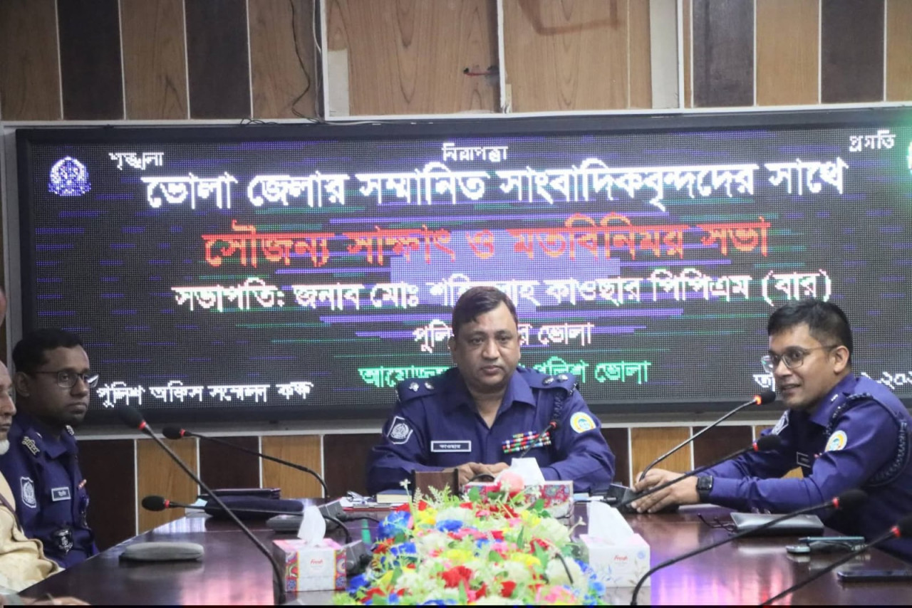 উক্ত সভায় ভোলা জেলার বিভিন্ন প্রিন্ট ও ইলেকট্রনিক মিডিয়ার সম্মানিত সাংবাদিকবৃনসহ জেলা পুলিশের উর্ধ্বতন র্ধ্বতন কর্মকর্তাবৃন্দ উপস্থিত ছিলেন।