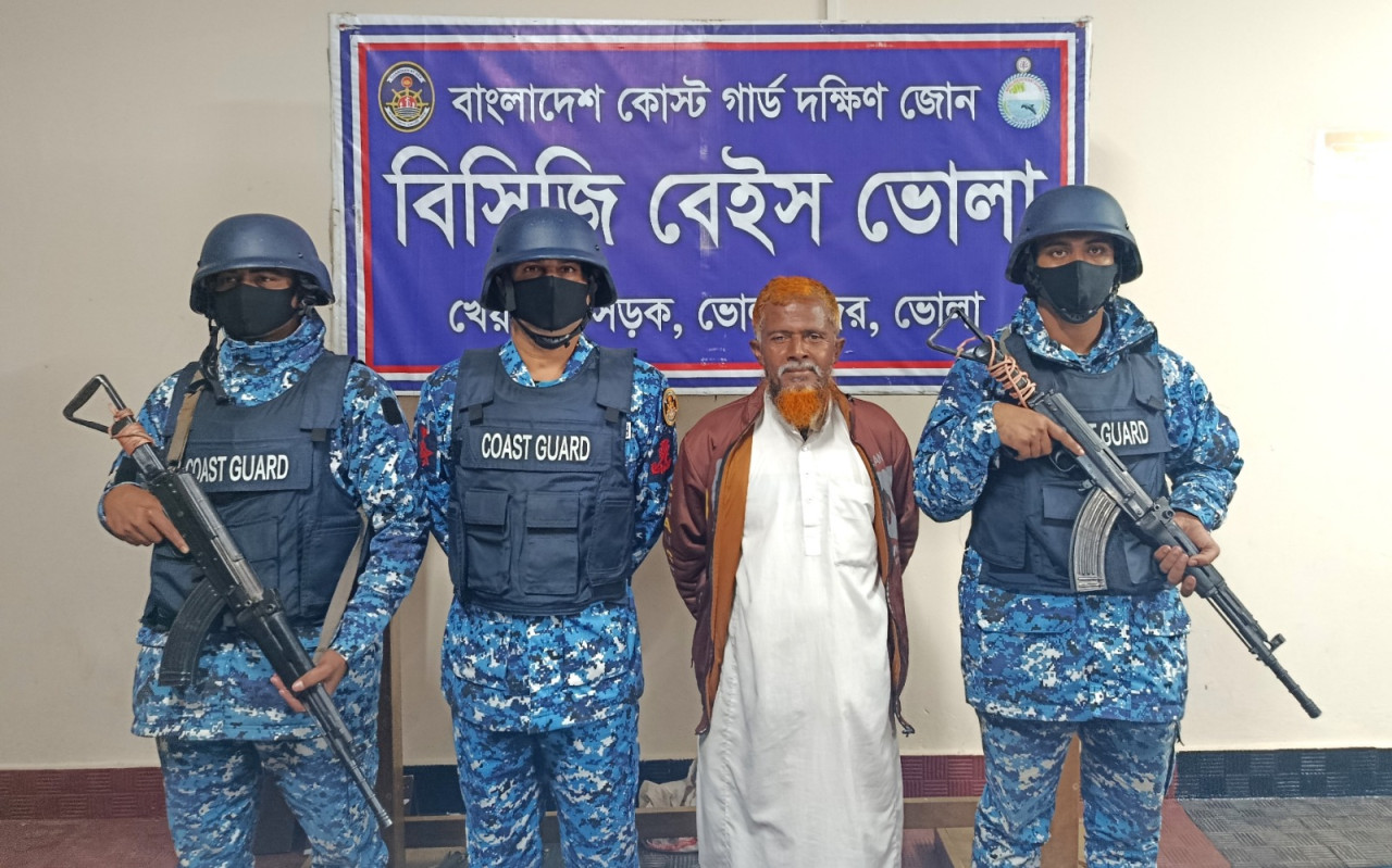 অপর দিকে গোপন সংবাদের ভিত্তিতে শুক্রবার মধ্যরাত ১ টায় কোস্টগার্ড বেইস ভোলা কর্তৃক ভোলা সদর থানাধীন ব্যাংকের হাট সংলগ্ন এলাকায় এলাকায় একটি বিশেষ অভিযান পরিচালনা করা হয়। এ সময় মোঃ মোশারফ হোসেন (৬০) কে আটক করা হয়। অভিযানে আটককৃত ব্যক্তি নিষিদ্ধ মৎস্যজীবী লীগের টাস্কফোর্স প্রতিনিধি।