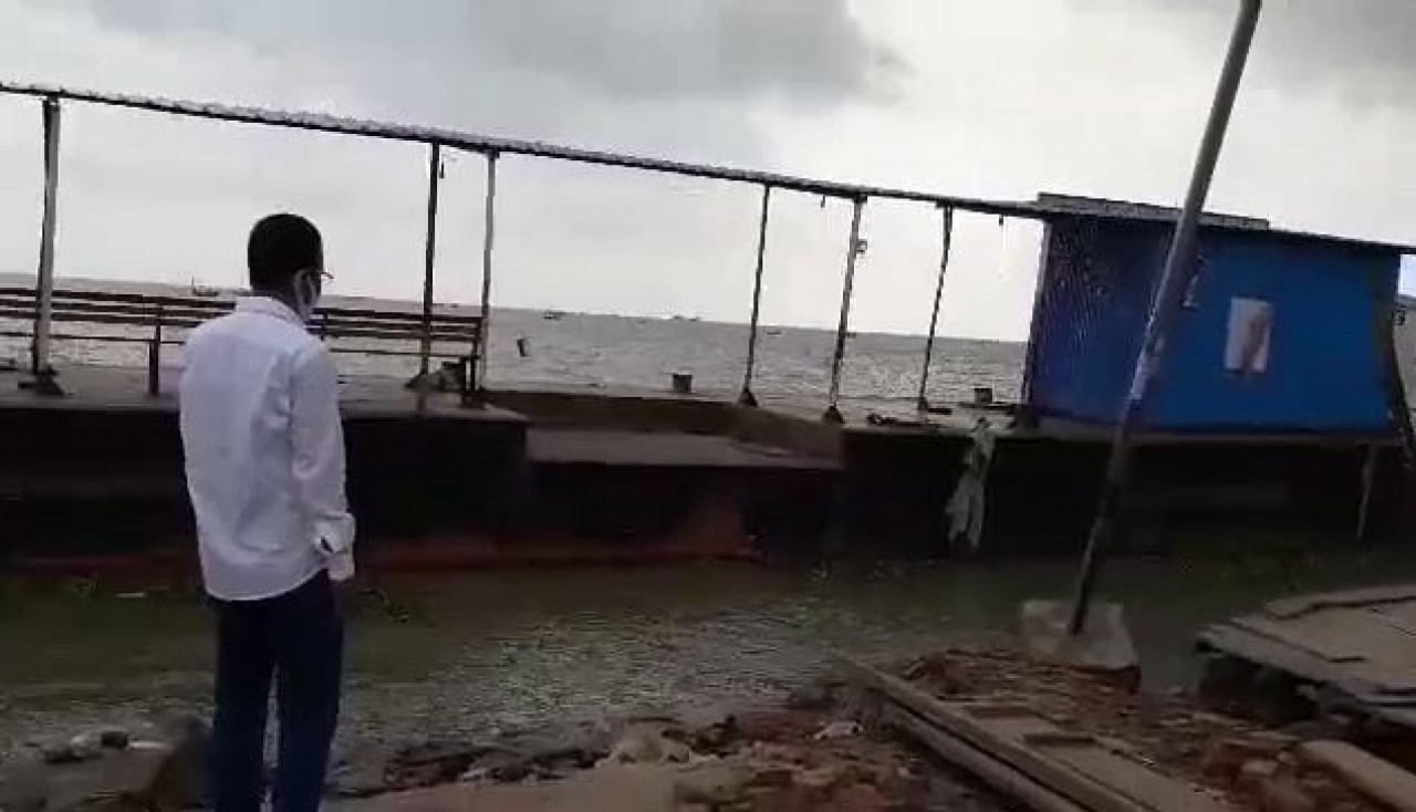 বাংলার কন্ঠ প্রতিবেদক: ভোলায় ঝড়ের তান্ডাবে বিধস্ত হয়েছে দৌলতখান বীরশ্রেষ্ঠ মোস্তফা কামাল লঞ্চঘাটের টার্মিনাল পন্টুন। বিছিন্ন হয়ে পড়েছে যোগযোগ ব্যবস্থা। বিধস্ত হওয়ার দুইদিন পরে বৃহস্পতিবার দুপুর পর্যন্ত বিআইডব্লিউটিএ’র কর্মকর্তাদের কেউ ওই ঘাটে যান নি বলে অভিযোগ করেন এলাকার ইউপি চেয়ারম্যান ইউনিয়ন আওয়ামী লীগ সহসভাপতি গোলাম নবী নবুসহ স্থানীয়রা। সকালে সরেজমিনে ওই ঘাটে গিয়ে দেখা যায় গাটে শতাধিক যাত্রী লঞ্চের জন্য অপেক্ষা করছেন। ঘাট ও পন্টু বিধস্ত হওয়ায়, কেউ যেতে পারছেন না। ঘাটের অনেকাংশ জোয়ারের পানিতে ভেঙে গেছে। স্থানীয়রা দাবি জানান ওই ঘাটসহ এলাকার ভাঙন রোধে জরুরী ভিত্তিতে সিসি ব্লক দেয়ার জন্য। অপরদিকে ভোলার ইলিশা লঞ্চঘাটের বিধস্ত ও ডুবে যাওয়া পন্টুন উদ্ধার অভিযান শুরু হয় নি। এমন কি অতিজোয়ারে হাইওয়াটার ফেরিঘাট তলিয়ে থাকায় ওই ঘাটেও লঞ্চ ও ফেরিচালাচল বন্ধ রয়েছে। সকাল থেকে ঢাকা ও চট্টগ্রামগামী কয়েক হাজার যাত্রী লঞ্চ, সিট্রাক ও ফেরিতে যেতে পারে নি। ঘাট এলাকা জোয়ারের পানিতে তলিয়ে থাকায় অনেক যাত্রী ঝুৃকি নিয়ে নৌকা যোগে গিয়ে মাঝ নদীতে নদীতে অপেক্ষমান লঞ্চে ওঠে । ঘাট ইজারাদার ইউনিয়ন আওয়ামী লীগ সম্পাদক হোসেন শহীদ সোয়ারদী জানান, এদিকে বৈরী আবহাওয়ার জন্য বুধবার লঞ্চ ফেরি চলাচল বন্ধ ছিল। সকাল থেকে আবহাওয়া ভালো হলেও ঘাট উন্নয়নে বিআইডব্লিউ’র পক্ষ থেকে কোন কাজ না করায় জোয়ারের পানিতে তলিয়ে থাকার জন্য লঞ্চ ও ফেরি চলাচল করতে পারে নি। প্রায় দেড় কোটি টাকায় ঘাট ইজারা নিয়ে এখন চরম লোকসানের মধ্যে রয়েছেন বলেও জানান ইজারাদার। দেশের ২১ জেলার সহজযোগযোগের রুট হিসেবে পরিচিত ভোলা-লক্ষ্মীপুর রুটে যাত্রীদেও যাতাযাত বন্ধ হওয়ার উপক্রম। এর জন্য বিআইডব্লিউটিএ’র কর্মকর্তাদেও দায়ি করেন ইউপি চেয়ারম্যান হাসনাইন আহমেদ হাসান। অপরদিকে ধসে যাওয়া শহররক্ষা বাধঁ বৃহস্পতিবারও সম্পূর্ন মেরামত করা না যাওয়ায় জোয়ারের পানি প্রবেশ অব্যাহত রয়েছে। ভোলা সদরের দুটি ইউনিয়ন সহ দৌলতখান উপজেলার ভবানীপুর ইউনিয়নের ৪টি ওয়ার্ডের ৪০ হাজার মানুষের ব্যাপক ক্ষয়ক্ষতি হয়েছে । এইসব এলাকার মানুষ দুর্বিসহ জীবন কাটাচ্ছে।