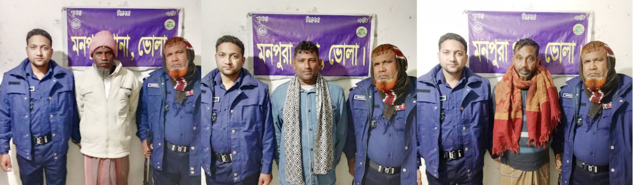 মোঃ সজীব মোল্লা, মনপুরা : ভোলার মনপুরায় বিশেষ অভিযান চালিয়ে যুবলীগ ও মৎস্যলীগের তিন নেতাকে আটক করে পুলিশ।