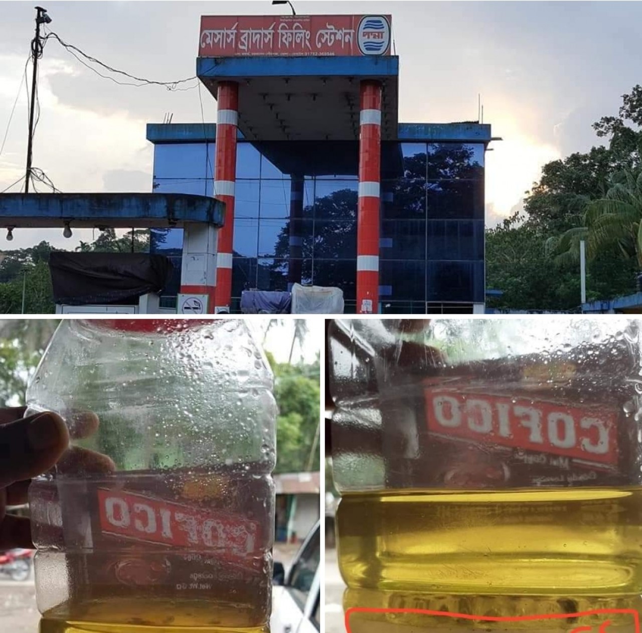 নাম প্রকাশে অনিচ্ছুক ব্যক্তি বলেন, বরিশাল থেকে তেল আনার পথে যে কোনো স্থান থেকে তেল পরিবহনের সাথে জড়িত ব্যক্তি এবং ড্রাইবার কর্তৃক ডিজেল পেট্রল ও অকটেনে পানি মিশ্রণ করার ফলে বিভিন্ন গাড়িসহ সকল মেশিনারী দুর্বল ও অকেজো হচ্ছে।