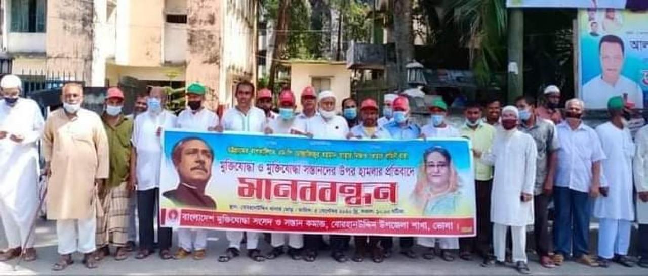 উক্ত মানববন্ধন ও প্রতিবাদ সভায় সন্তান কমান্ডের সাধারন সম্পাদক দিন ইসলাম রুবেল বলেন, চট্টগ্রামের বাঁশখালীতে একজন মুক্তিযোদ্ধাকে রাষ্ট্রীয় মর্যাদায় দাফন না করায় এমপি মোস্তাফিজুর রহমানের ক্যাডার বাহিনী দ্বারা মু্ক্িতযোদ্ধা ও তাদের সন্তাদের উপর হামলার প্রতিবাদে দোষীদেরকে অবিলম্বে গ্রেফতার করে সুষ্ঠু বিচার করতে সরকারের কাছে জোর দাবি জানান।