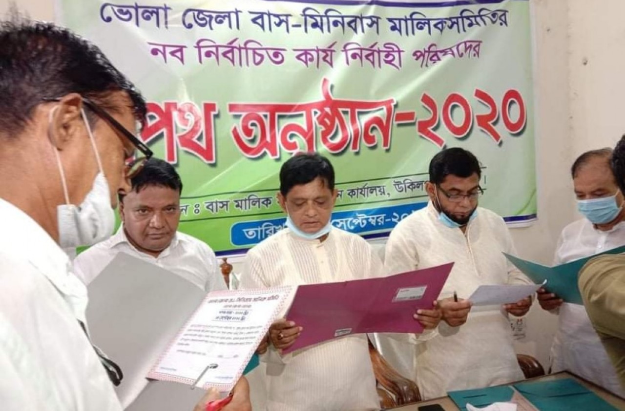এসময় নব নির্বাচিত কমিটির সদস্যদের শপথ বাক্য পাঠ করান জেলা বাস মিনিবাস মালিক সমিতির সভাপতি মো. আকতার হোসেন। এর আগে বাস মালিকদের সম্মতিতে আগামী দুই বছরের জন্য মো. আকতার হোসেনকে সভাপতি, আবুল কালামকে সাধারন সম্পাদক ও মো. সফিকুল ইসলামকে সাংগঠনিক সম্পাদক করে ২১ সদস্য বিশিষ্ট কমিটি ঘোষণা করা হয়। আগামী দুই বছর এ কমিটি সমিতির সকল কার্যক্রম পরিচালনা করবেন। শপথ শেষে কমিটির সদস্যরা ভোলা-১ আসনের সংসদ সদস্য সাবেক বাণিজ্যমন্ত্রী তোফায়েল আহমেদকে শুভেচ্ছা ও অভিনন্দন জানান।