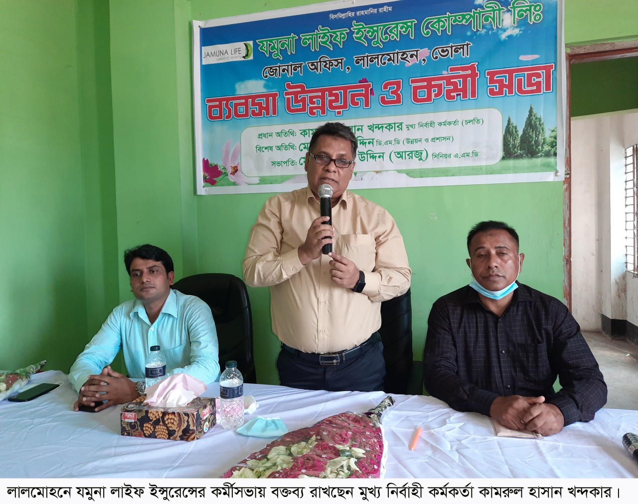 ওমর রায়হান অন্তর, লালমোহন: লালমোহনে যমুনা লাইফ ইন্সুরেন্স কোম্পানী লিমিটেড এর ব্যবসা উন্নয়ন ও কর্মী সভা অনুষ্ঠিত হয়েছে । শনিবার সকাল ১১টায় যমুনা লাইফ ইন্সুরেন্স কোম্পানির লালমোহন জোনাল অফিসে এ কর্মী সভা অনুষ্ঠিত হয়। সভায় সিনিয়র এএমডি মোঃ মেজবাহ উদ্দিন আরজুর সভাপতিত্বে প্রধান অতিথির বক্তব্য রাখেন, যমুনা লাইফের মুখ্য নির্বাহী কর্মকর্তা (চলতি) কামরুল হাসান খন্দকার। বিশেষ অতিথির বক্তব্য রাখেন, যমুনা লাইফের ডিএমডি (উন্নয়ন ও প্রশাসন) মোঃ জসিম উদ্দিন।
